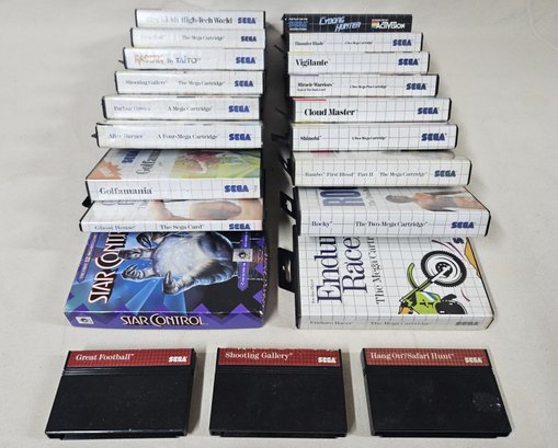 Notes: Assorted Sega Master System Video Games are pre-owned showing light signs of wear commensurate with age & use, video games are untested, 3 games without cases, and all games may have individual various light to minor blemishes, and all games with no major apparent flaws. Please review pictures.