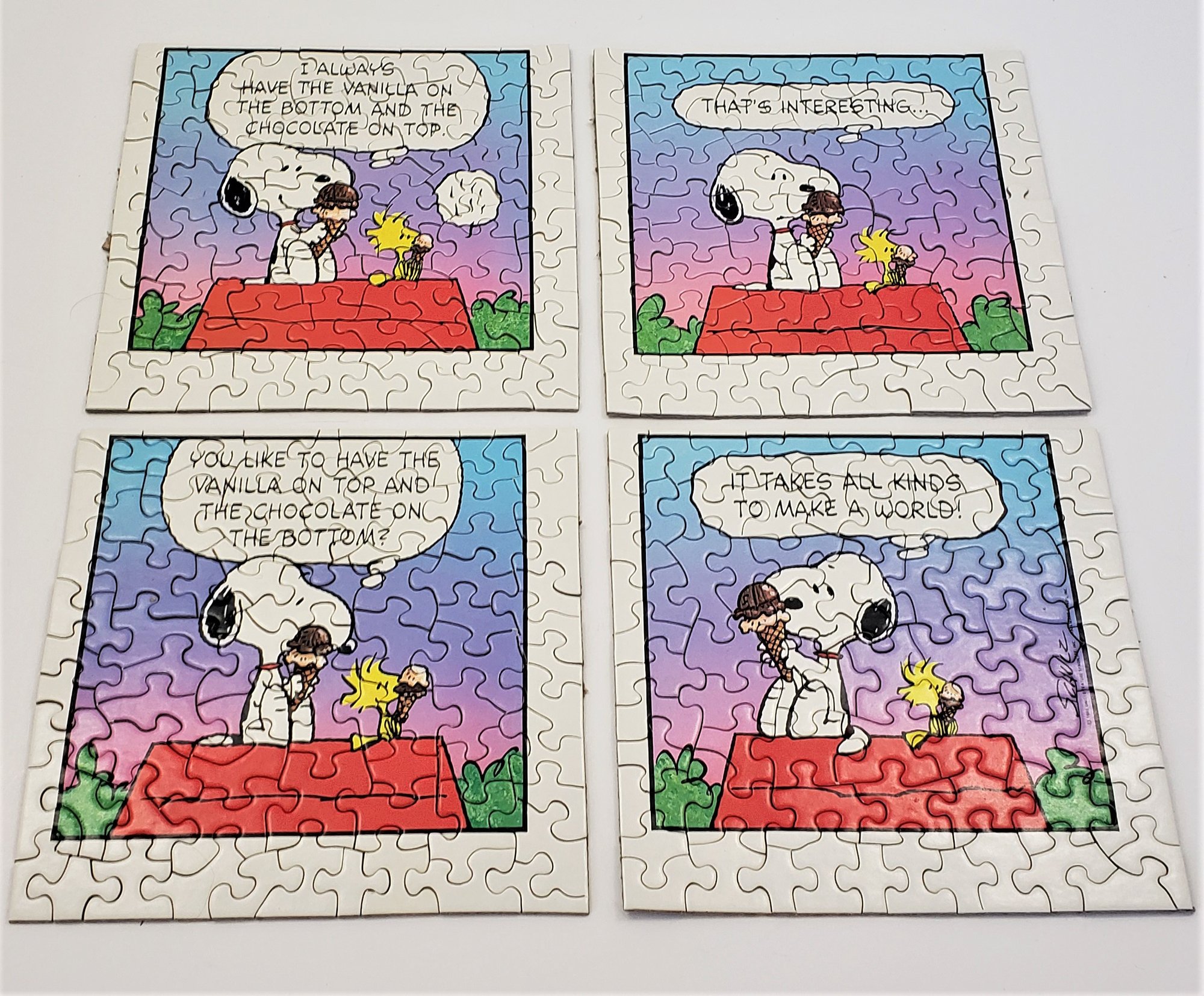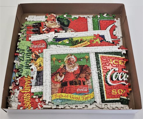 Group of ~3 assorted Springbok jigsaw puzzles including a Santa's Coca-Cola Christmas, a Snoopy It Takes All Kinds, and a Playthings from the Past. Produced by Hallmark Cards, Inc.