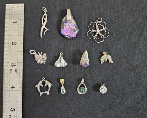 Group of 11 assorted Sterling silver pendant/charms. Various makers.