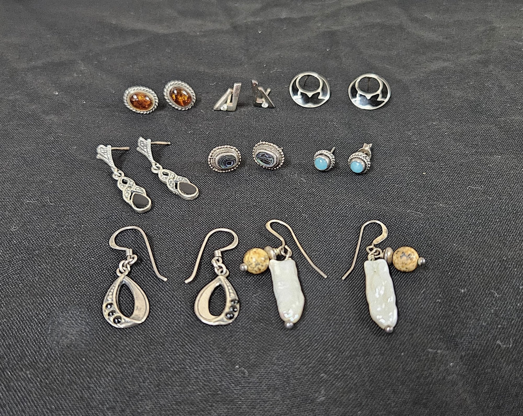 Group of 7 assorted Sterling silver stud & dangle earring pairs. Various makers.