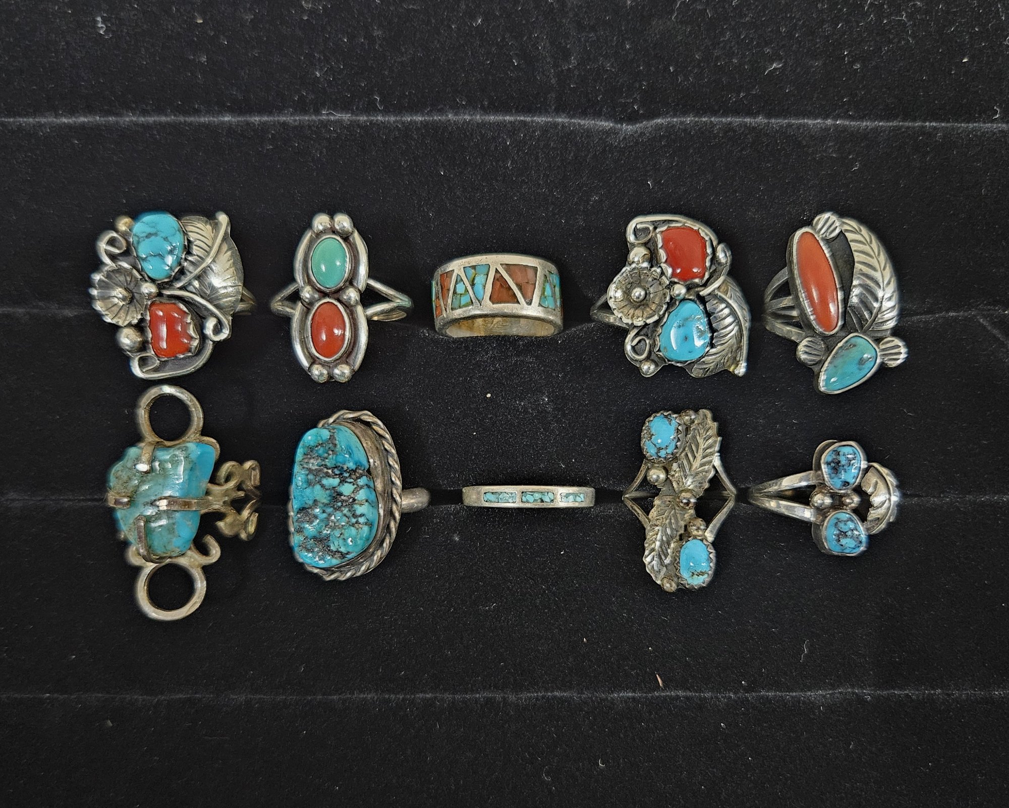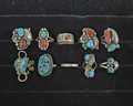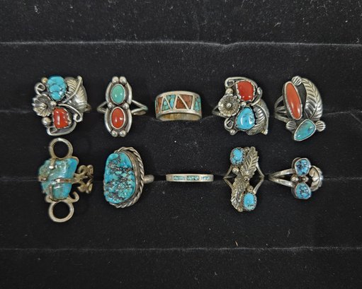 Notes: Assorted Sterling Silver & Turquoise Rings are pre-owned showing signs of wear commensurate with age & use. Please review photos.
