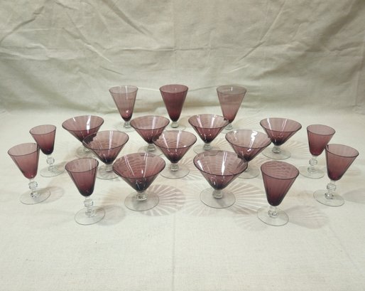 Notes: Assorted Vintage Amethyst Glass Stemware is pre-owned showing signs of wear commensurate with age & use. Please contact for further condition report or photos.