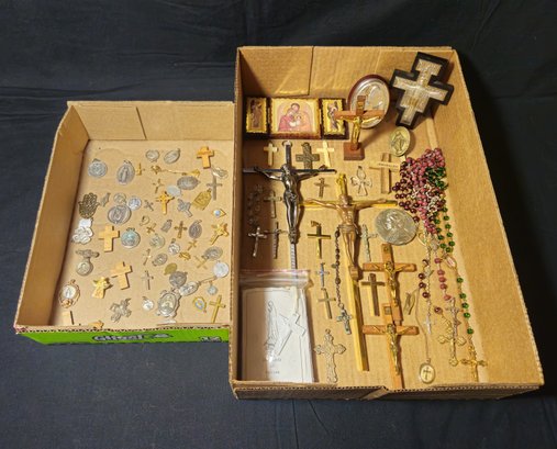 Notes: Assorted Vintage Costume Jewelry Religious Crosses & Other Relics are pre-owned showing signs of wear commensurate with age & use. Please contact for further condition report or photos.