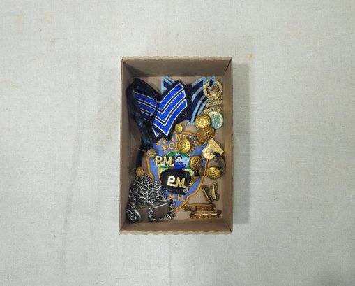 Notes: Assorted Vintage Fraternal & Police Patches and Pins are pre-owned showing signs of wear commensurate with age & use. Please contact for further condition report or photos.