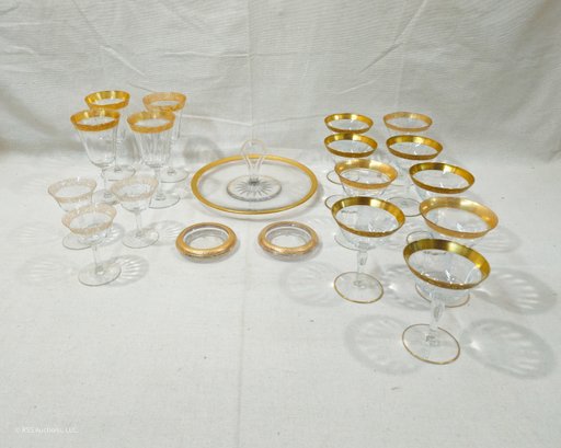Notes: Assorted Vintage Gilt Accented Glassware are pre-owned showing minimal to moderate signs of wear commensurate with age & use and individually have no major apparent identifiable blemishes or flaws. Please review pictures.