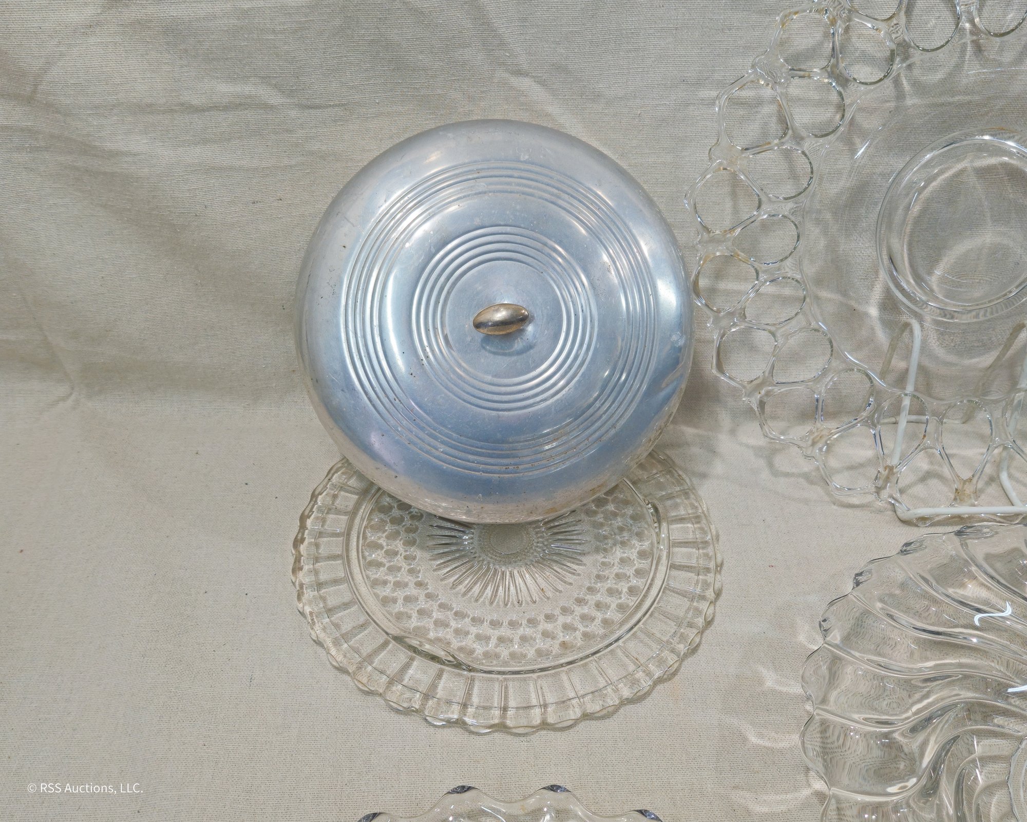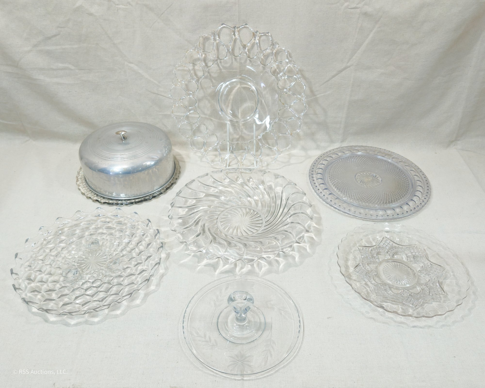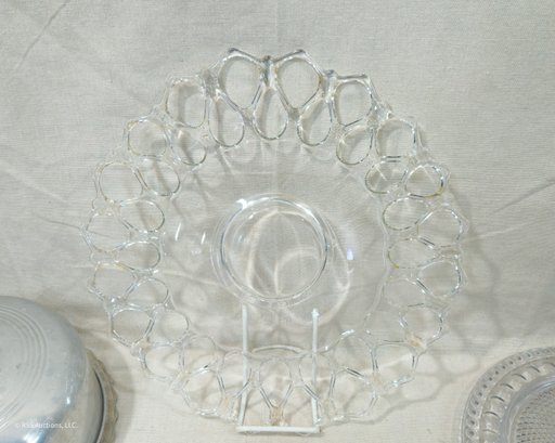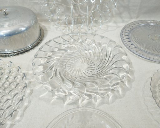 Notes: Assorted Vintage Glass Bowl & Serving Platters are pre-owned showing light signs of wear commensurate with age & use and individually have no major apparent identifiable blemishes or flaws. Please review pictures.