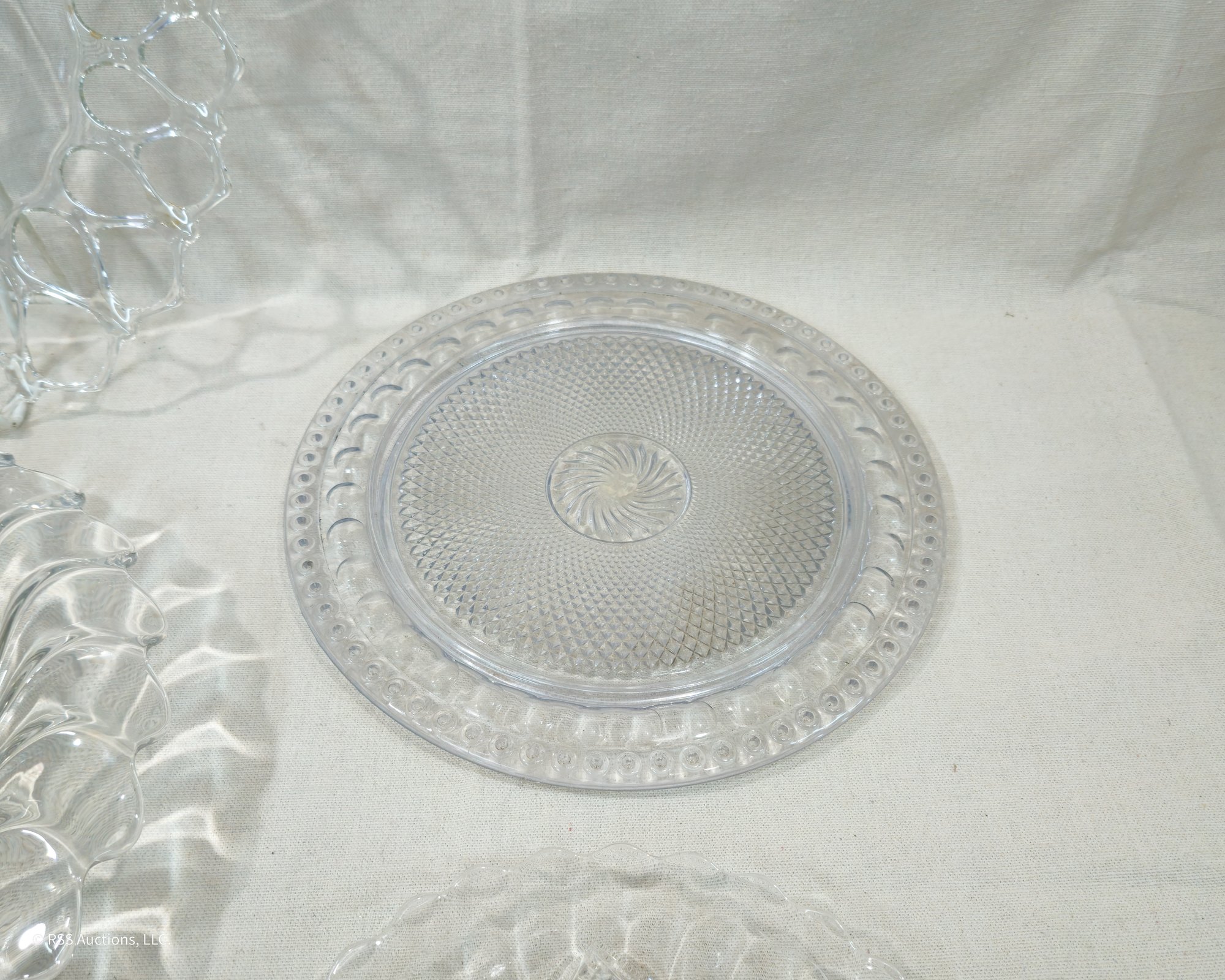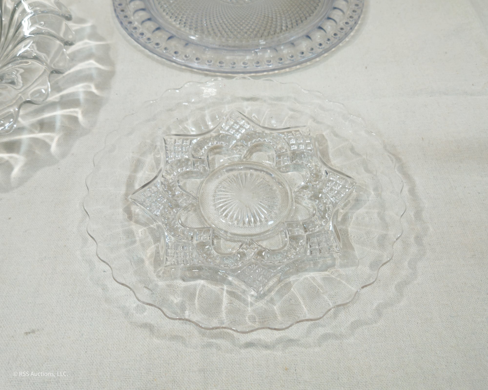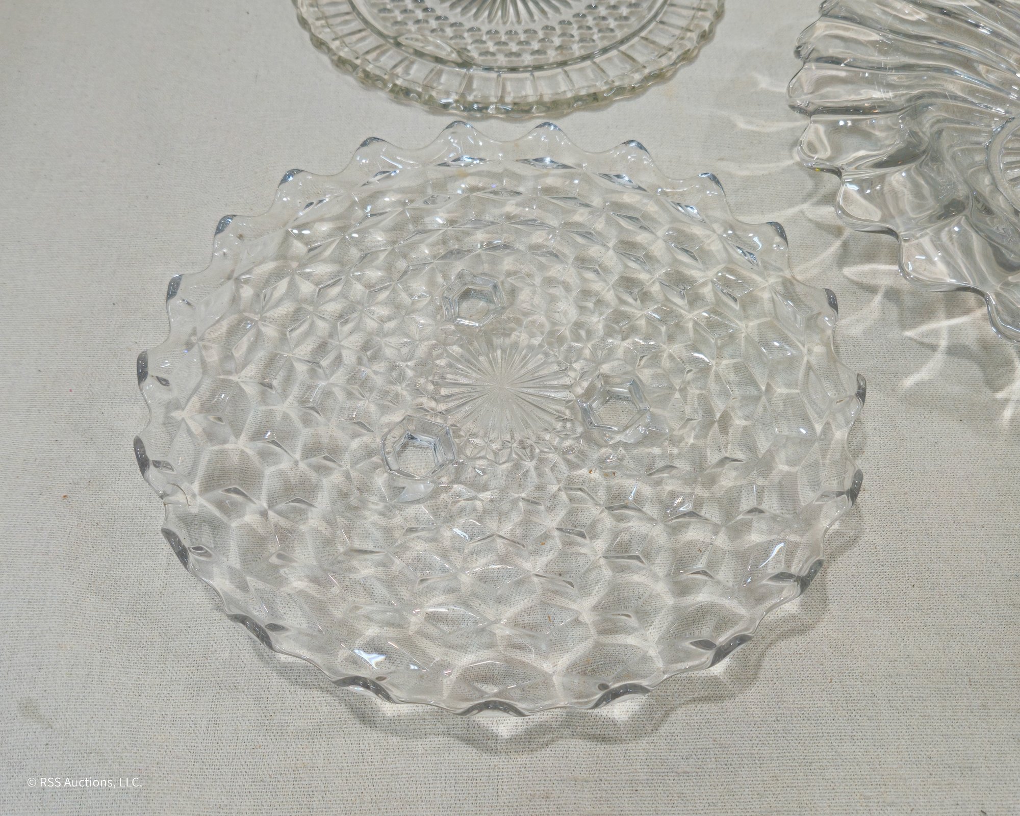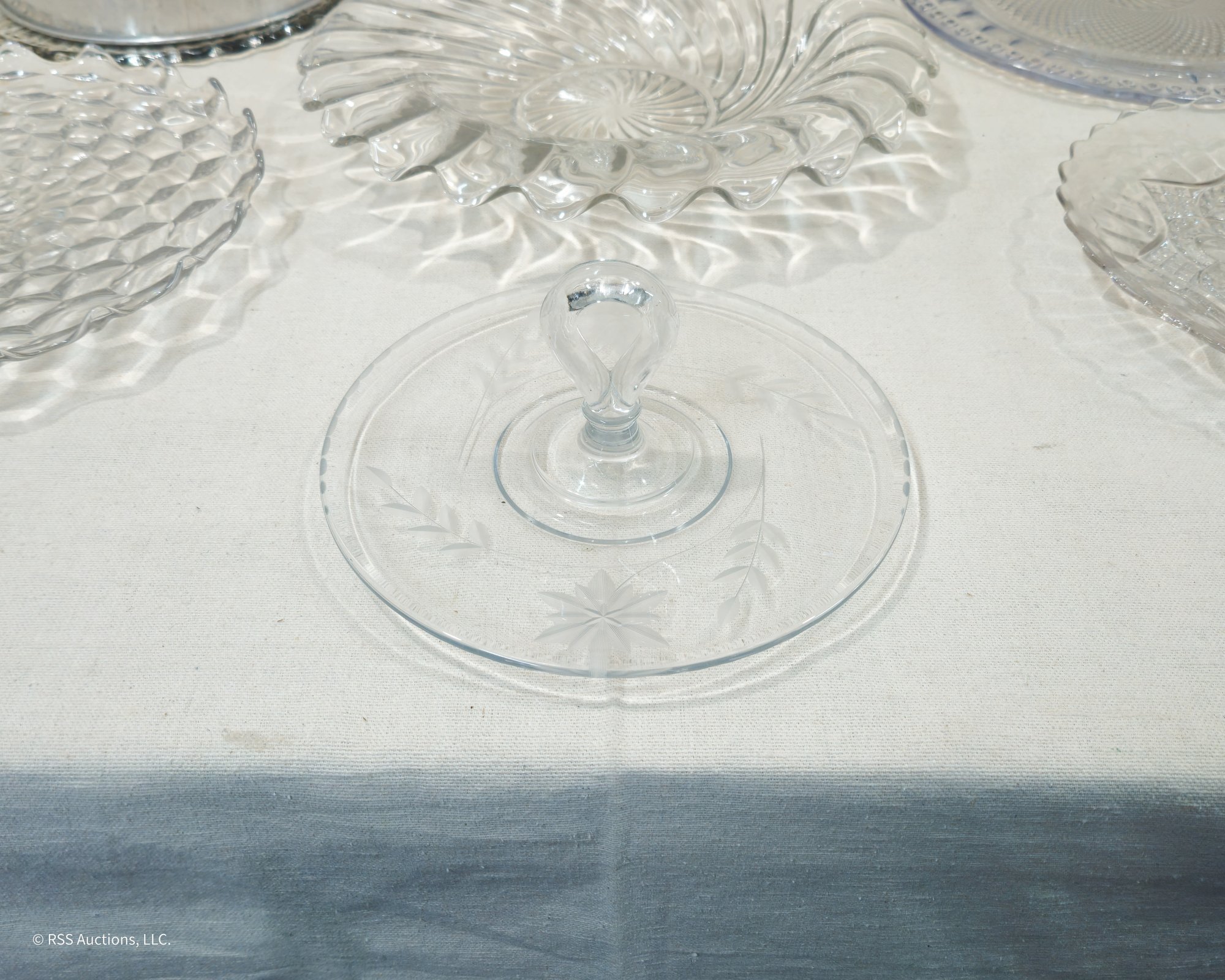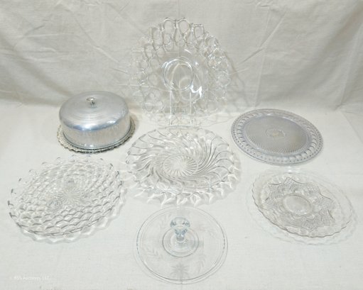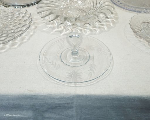 Group of ~7 assorted vintage glass bowl & serving platters in various forms and patterns.
