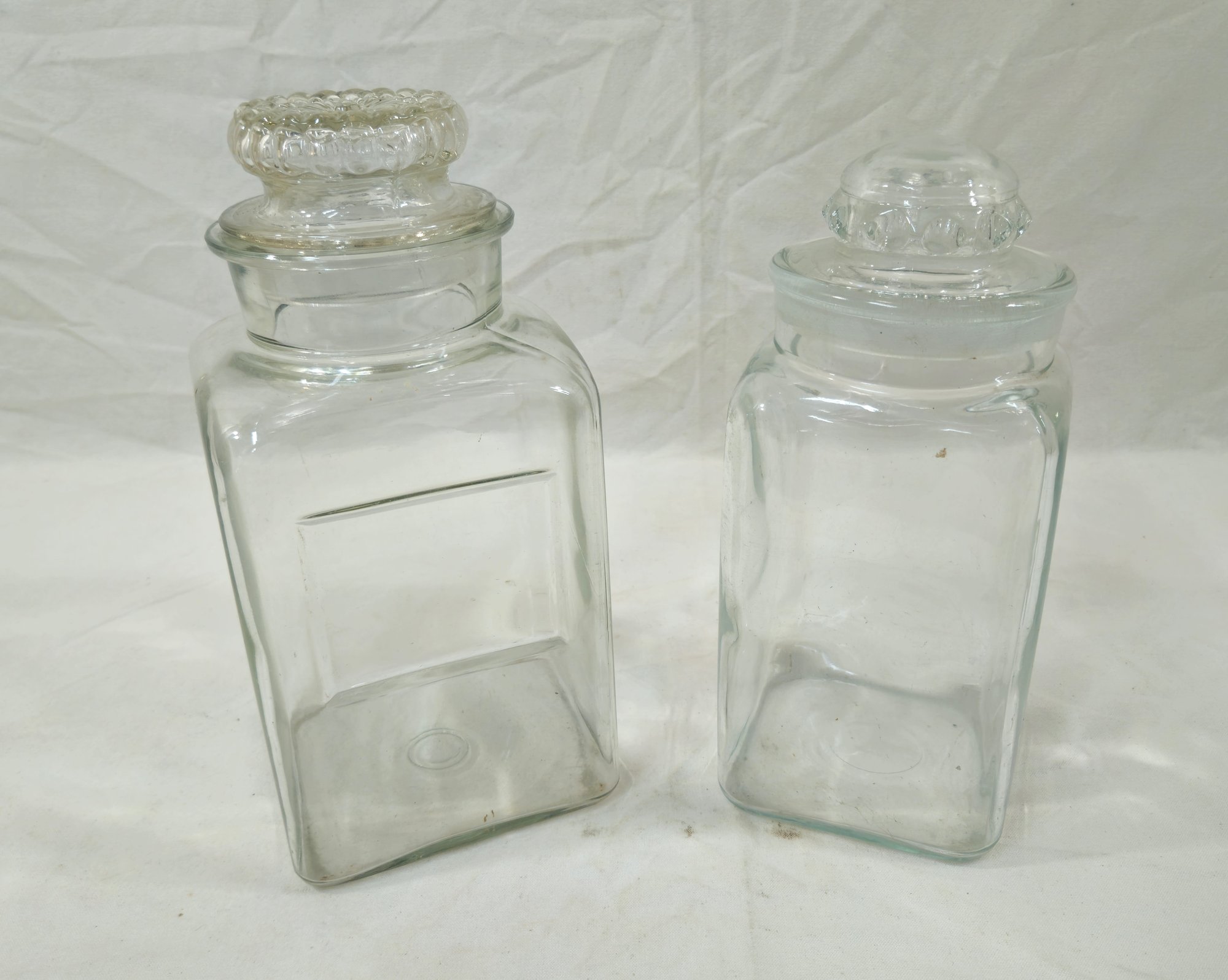 Notes: Assorted Vintage Glass Canister Jars are pre-owned showing signs of wear commensurate with age & use. Please review pictures.