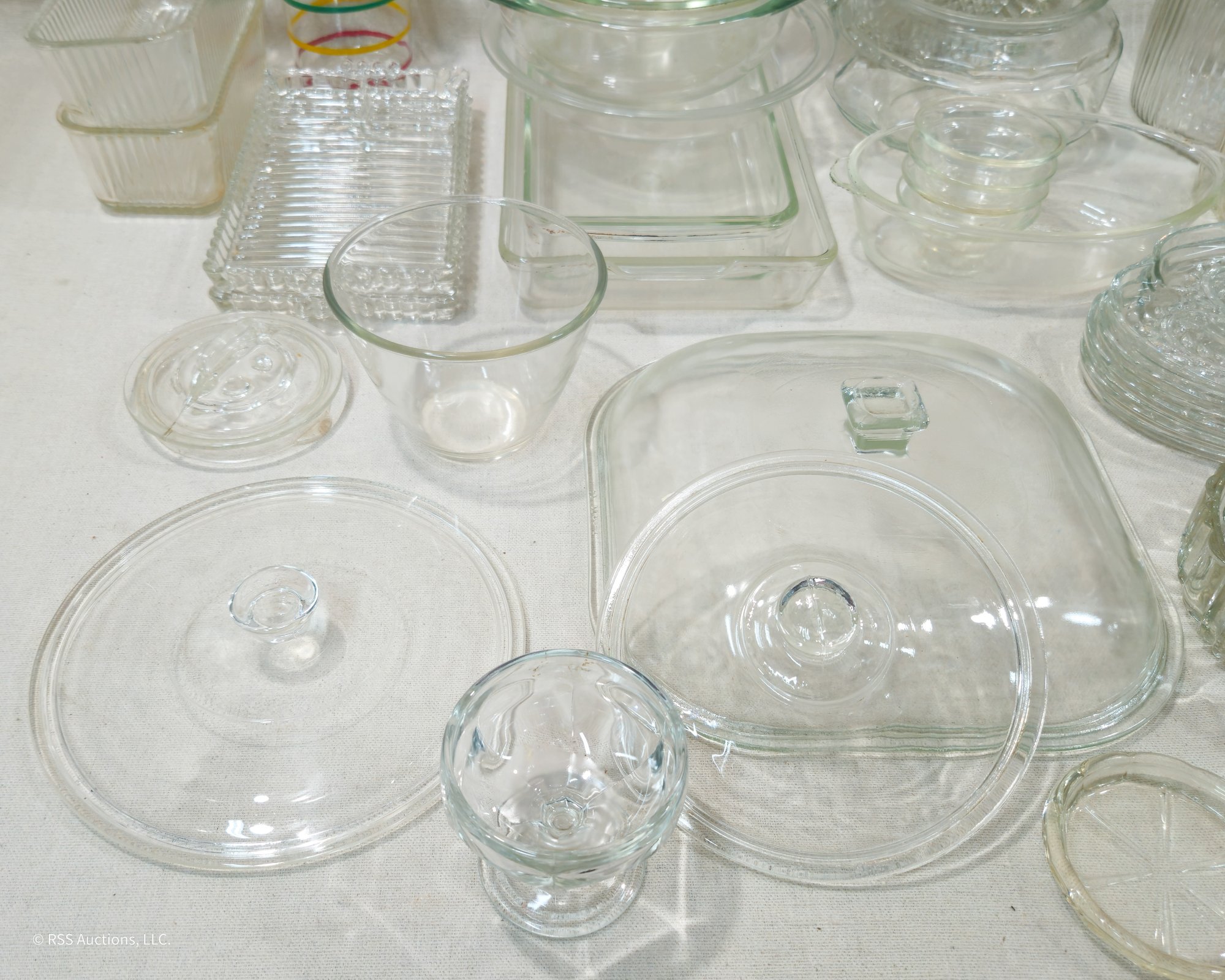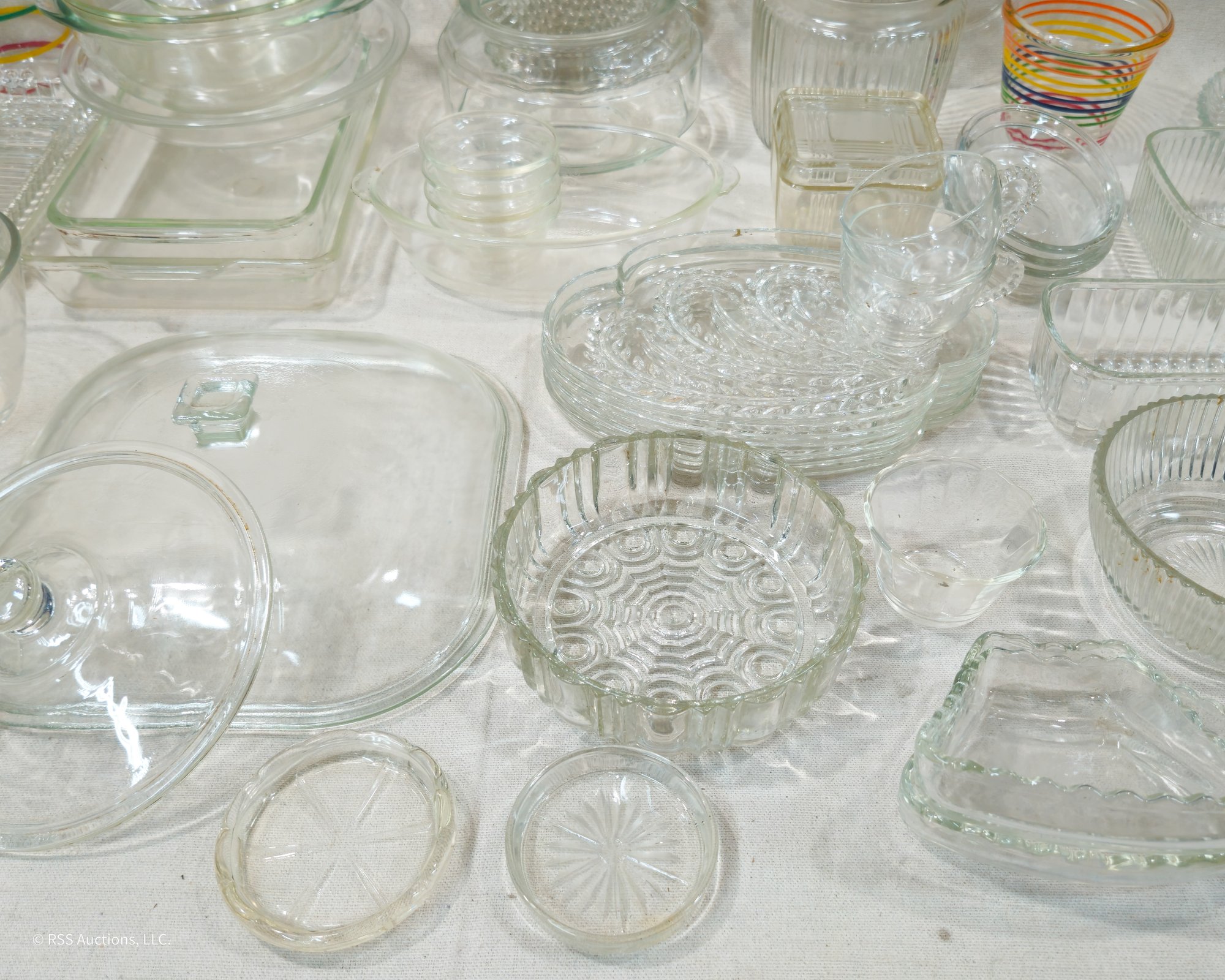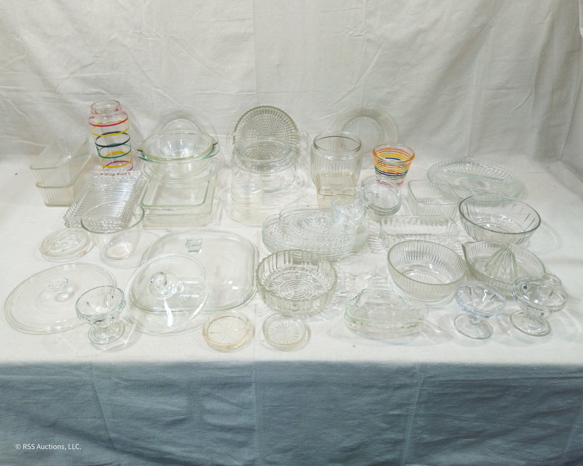 Group of assorted vintage kitchen glassware in various forms and patterns.