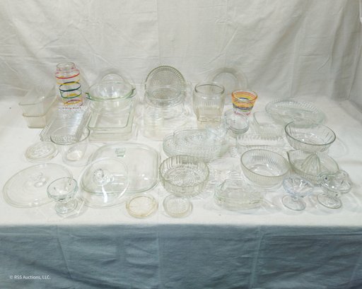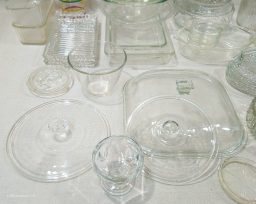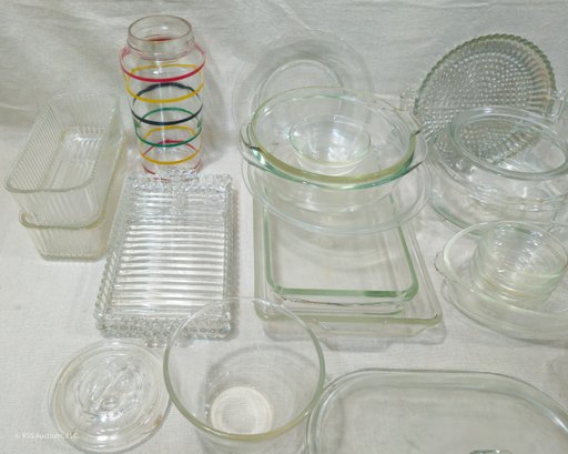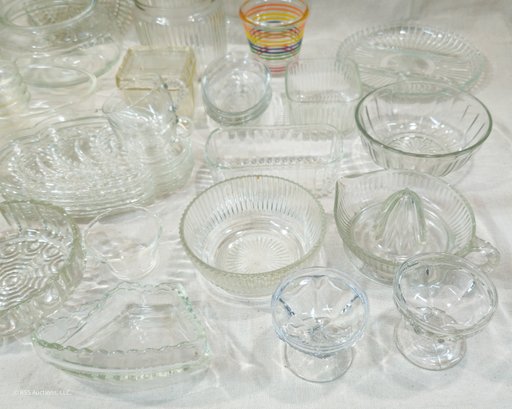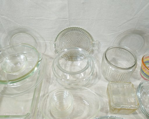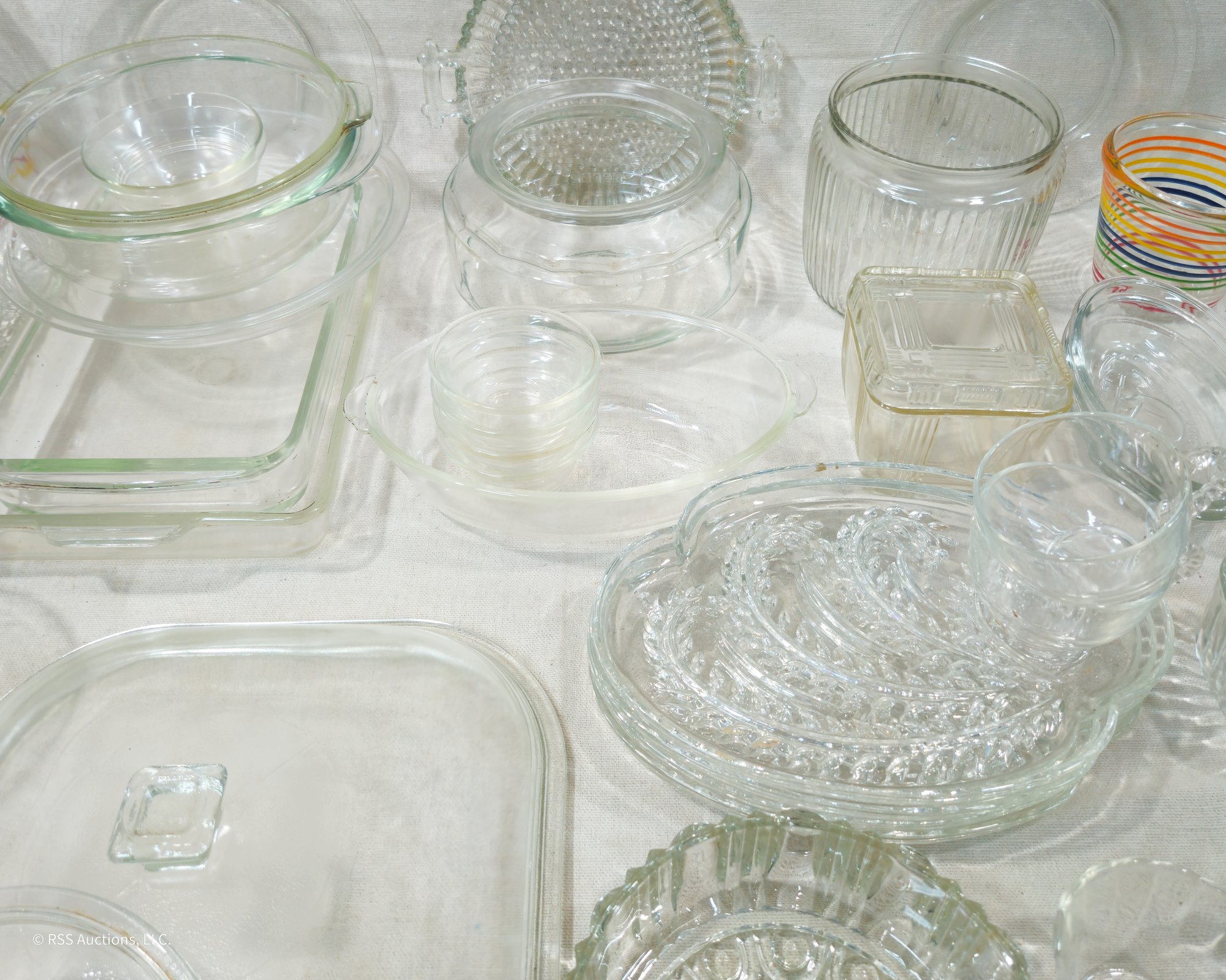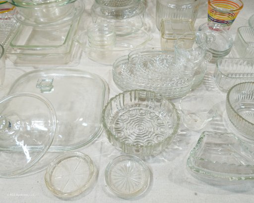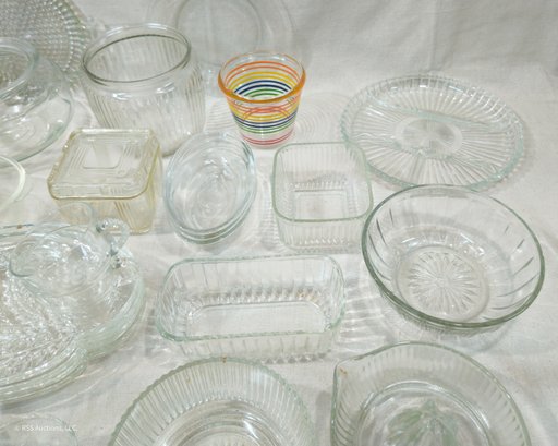 Group of assorted vintage kitchen glassware in various forms and patterns.