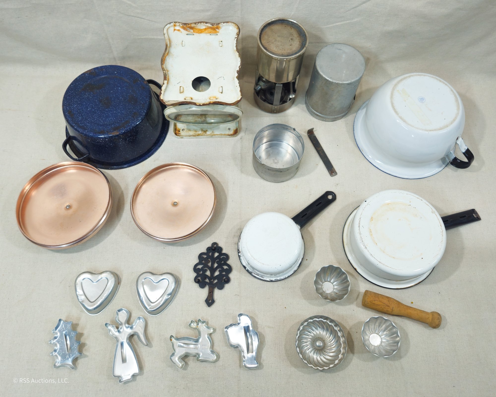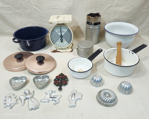 Notes: Assorted Vintage Kitchen Metalware are pre-owned showing light to moderate signs of wear commensurate with age & use and individually are in various stages of condition.