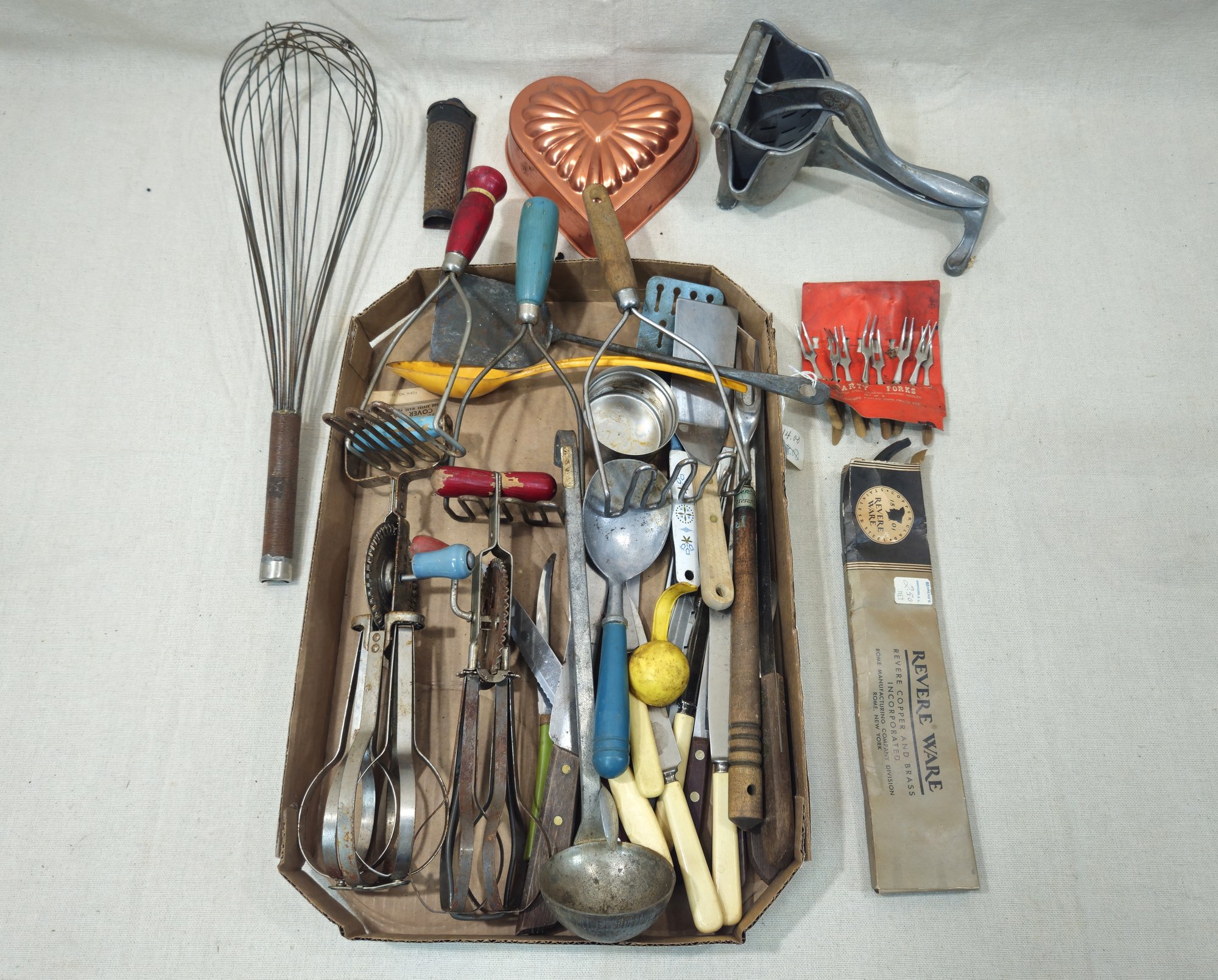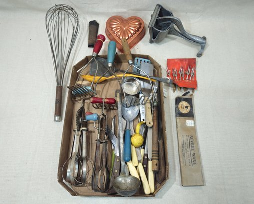Notes: Assorted Vintage Kitchen Utensils & Gadgets are pre-owned showing signs of wear commensurate with age & use. Please contact for further condition report or photos.