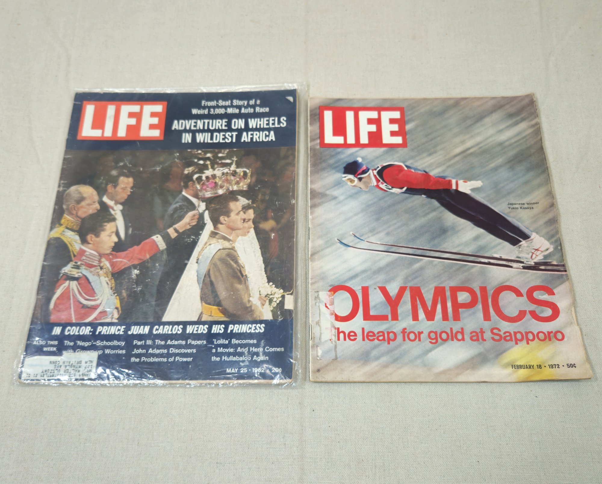 Group of ~8 assorted vintage Life magazines including 7/28/41, 6/28/43, 4/23/45, 9/26/55, 11/7/55, 1/19/62, 5/25/62, and a 2/18/72.