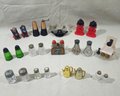 Notes: Assorted Vintage Metal, Glass, & Plastic Salt & Pepper Sets are pre-owned showing signs of wear commensurate with age & use. Please contact for further condition report or photos.