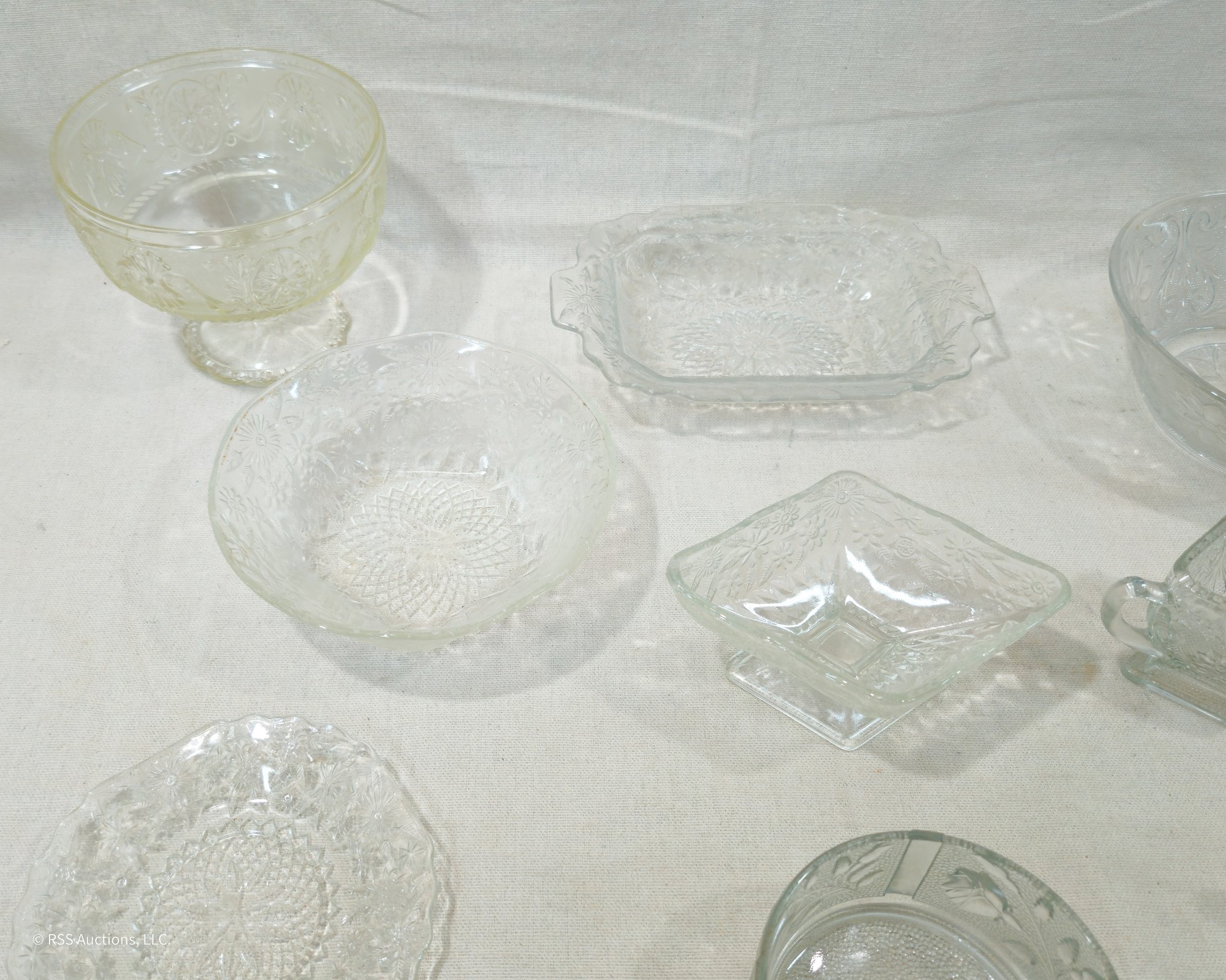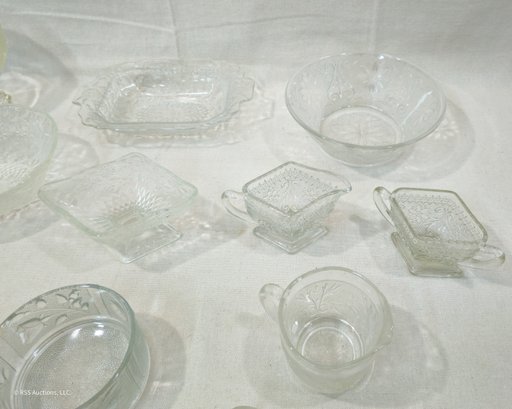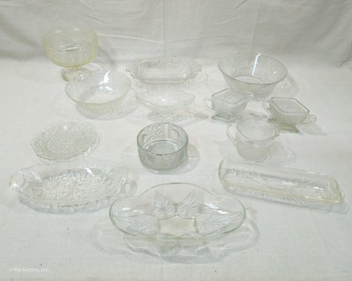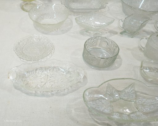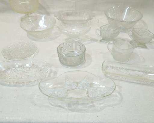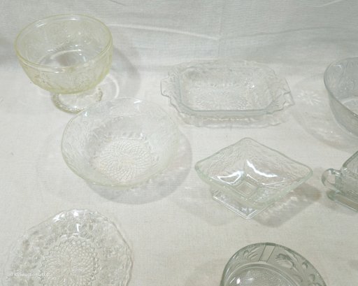 Notes: Assorted Vintage Pattern Glassware are pre-owned showing light signs of wear commensurate with age & use and individually have no major apparent identifiable blemishes or flaws. Please review pictures.