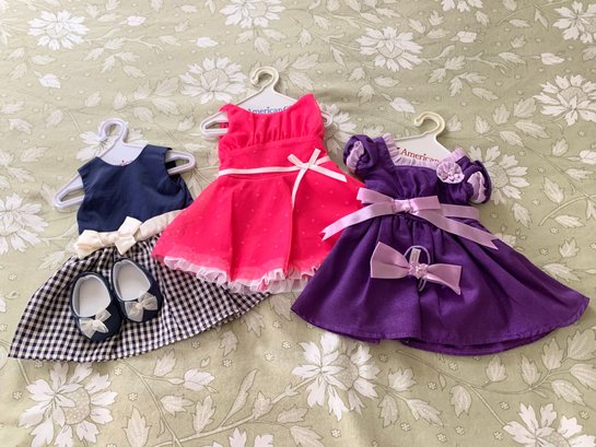American Girl clothes 3 dresses, 1 pair of shoes & 1 hair tie (elastic stretched out)