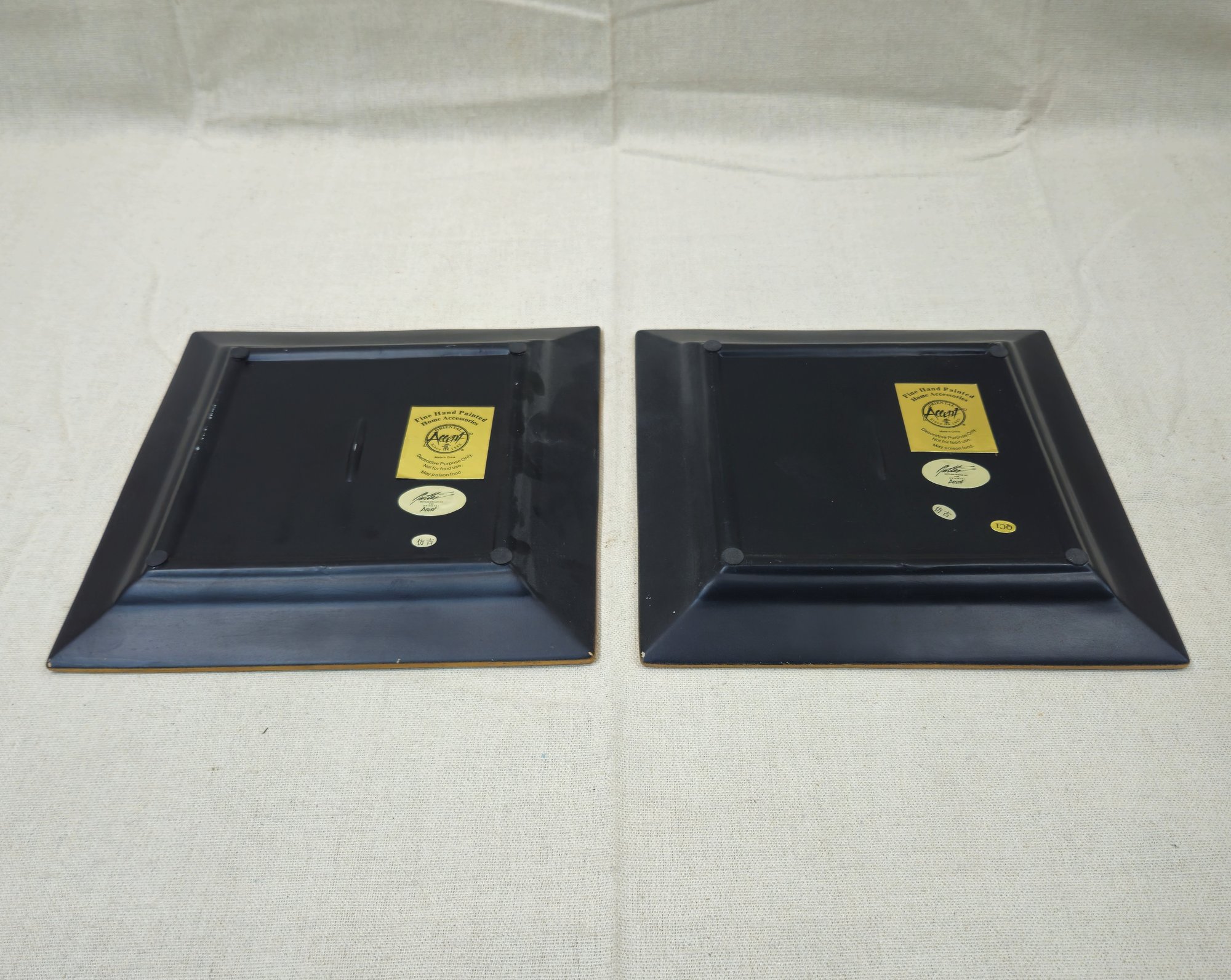 Butler Designs for Oriental Accents hand painted decorative pottery plates. Not for food use.