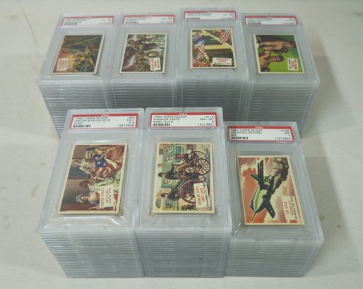 Complete PSA graded Topps Scoop non-sports trading cards set numbers 1-156. Cards are of various PSA grades.