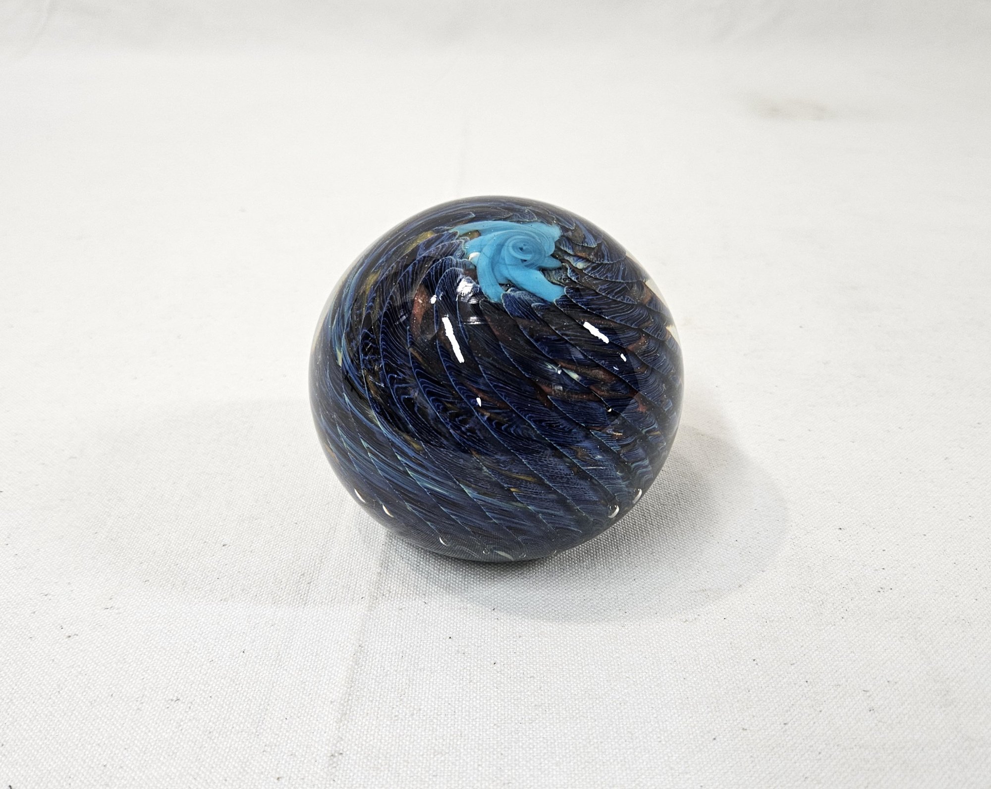Notes: Contemporary studio Swirl Glass paperweight Signed is pre-owned showing signs of wear commensurate with age & use. Please review photos.