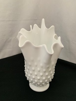 Fenton white handkerchief swung vase ~8"