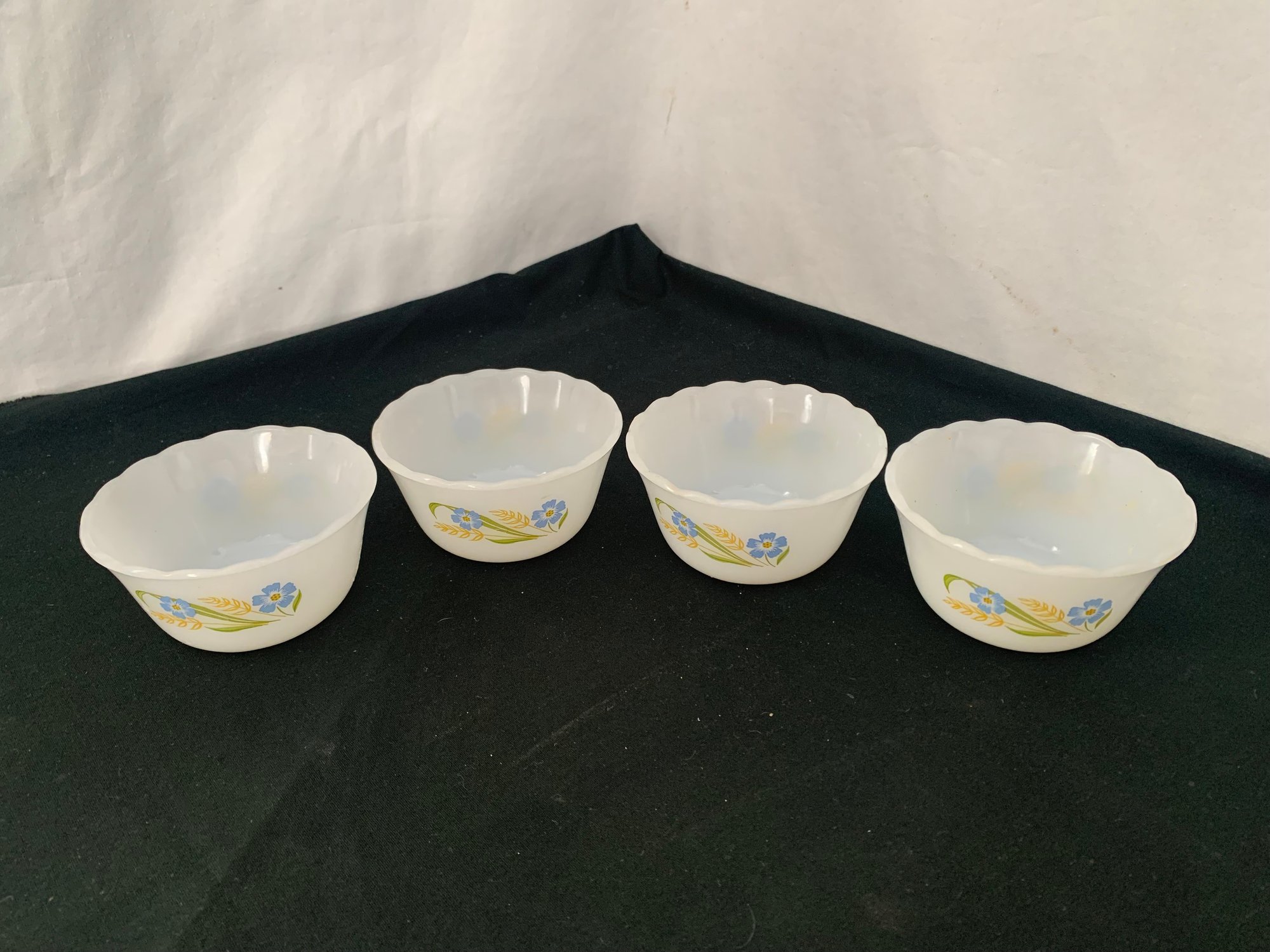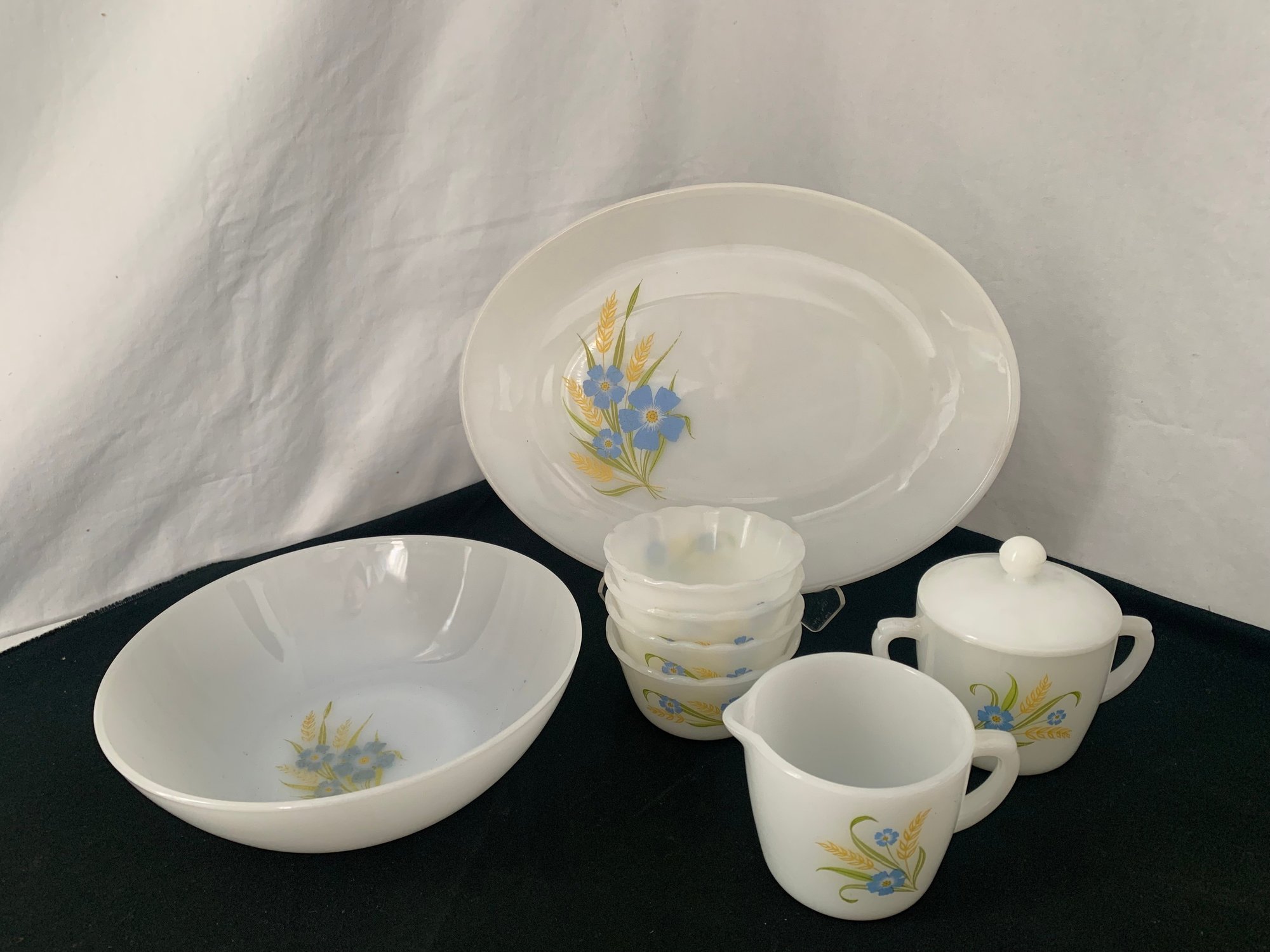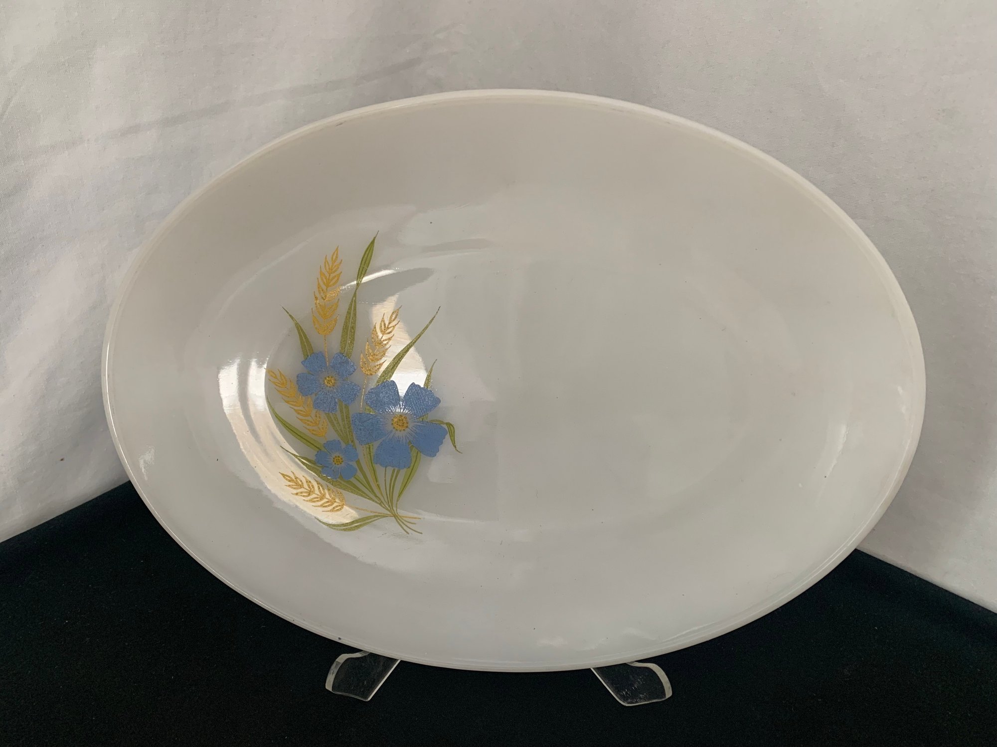Notes: Fire King Forget Me Not serving dishes are pre-owned showing light wear commensurate with age & use with no apparent flaws. Please review pictures.