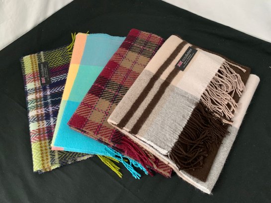 100% Cashmere multi-colored Scarves Made in Scotland Total of 4 All measure ~64" x ~ 11 1/2"