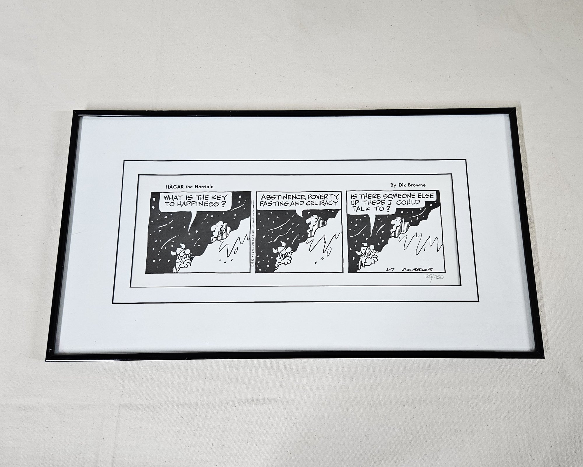 Framed select edition Dik Browne Hagar The Horrible comic strip wall art. Numbered 125/950. Marked with embossed Classcom, Inc. seal lower right.