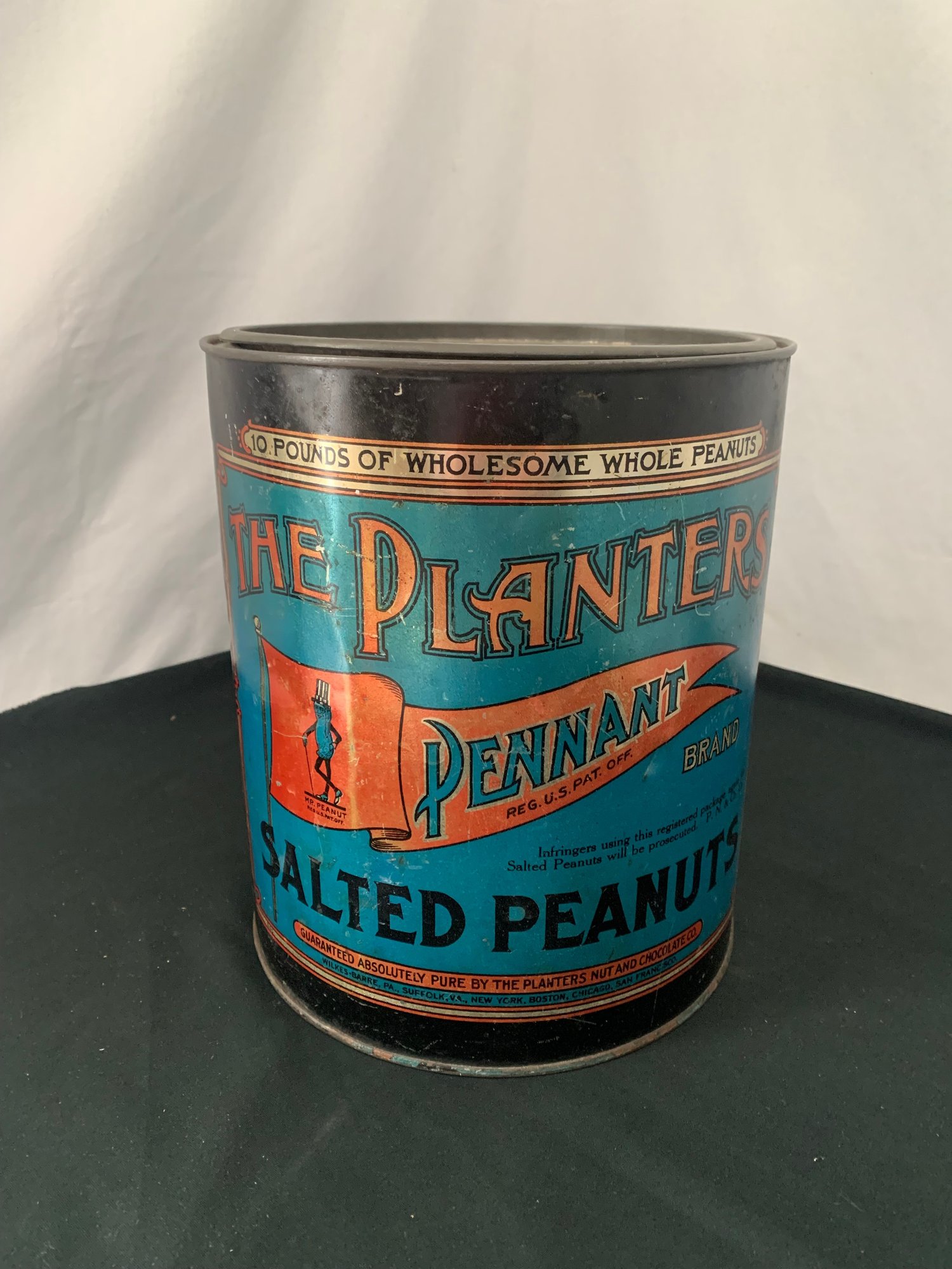 Planters Pennant Salted Peanuts '10 pounds of wholesome whole peanuts' advertising tin/can