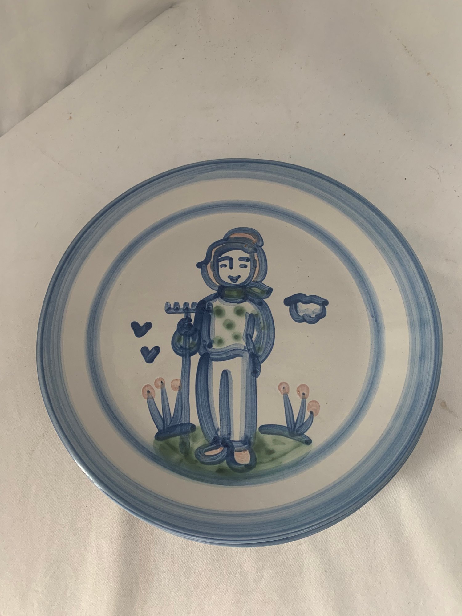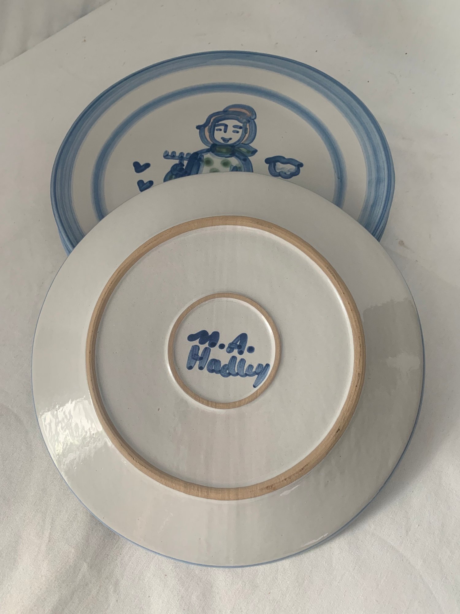 Notes: M. A. Hadley Pottery Country Dinner Plates Set of 4 are pre-owned showing light signs of wear commensurate with age & use and have no major apparent identifiable blemishes or flaws. Please review pictures.
