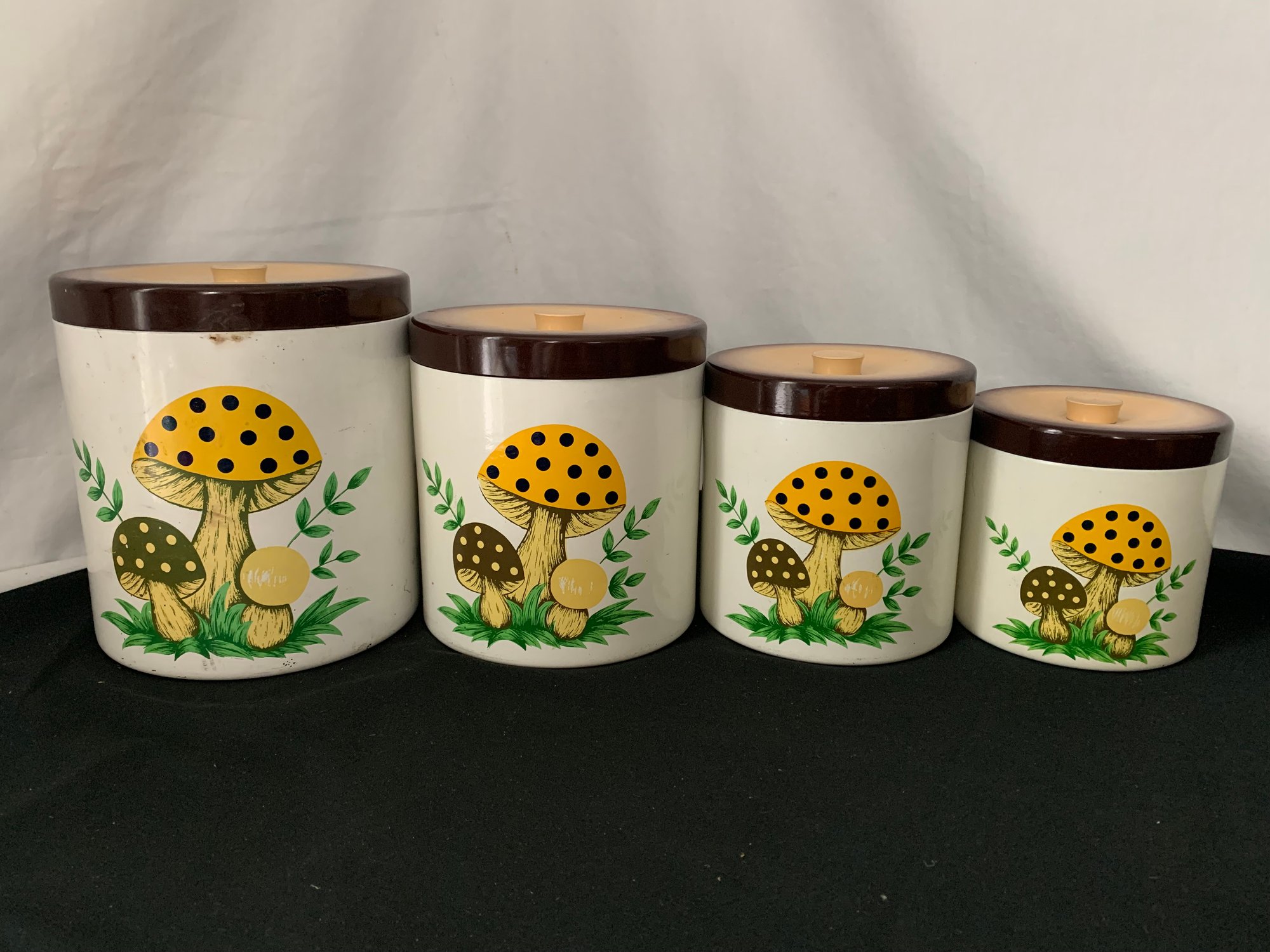 1979 Sears Roebuck & Co Merry Mushroom Nesting Canister Set, Japan, Plastic/Melamine