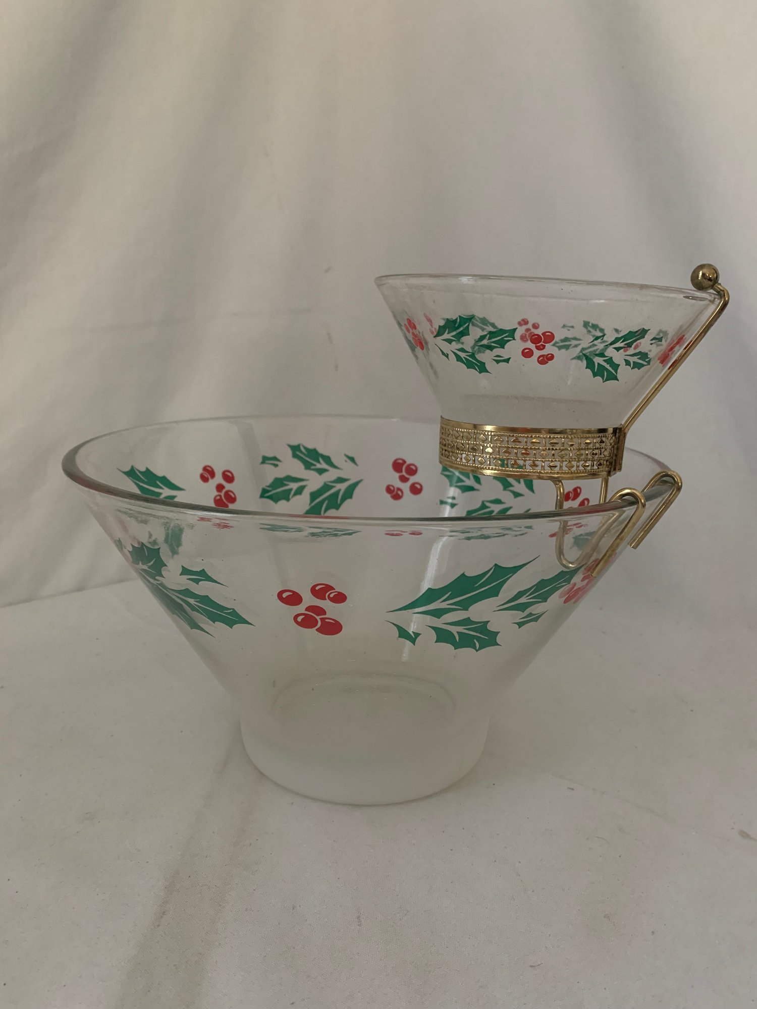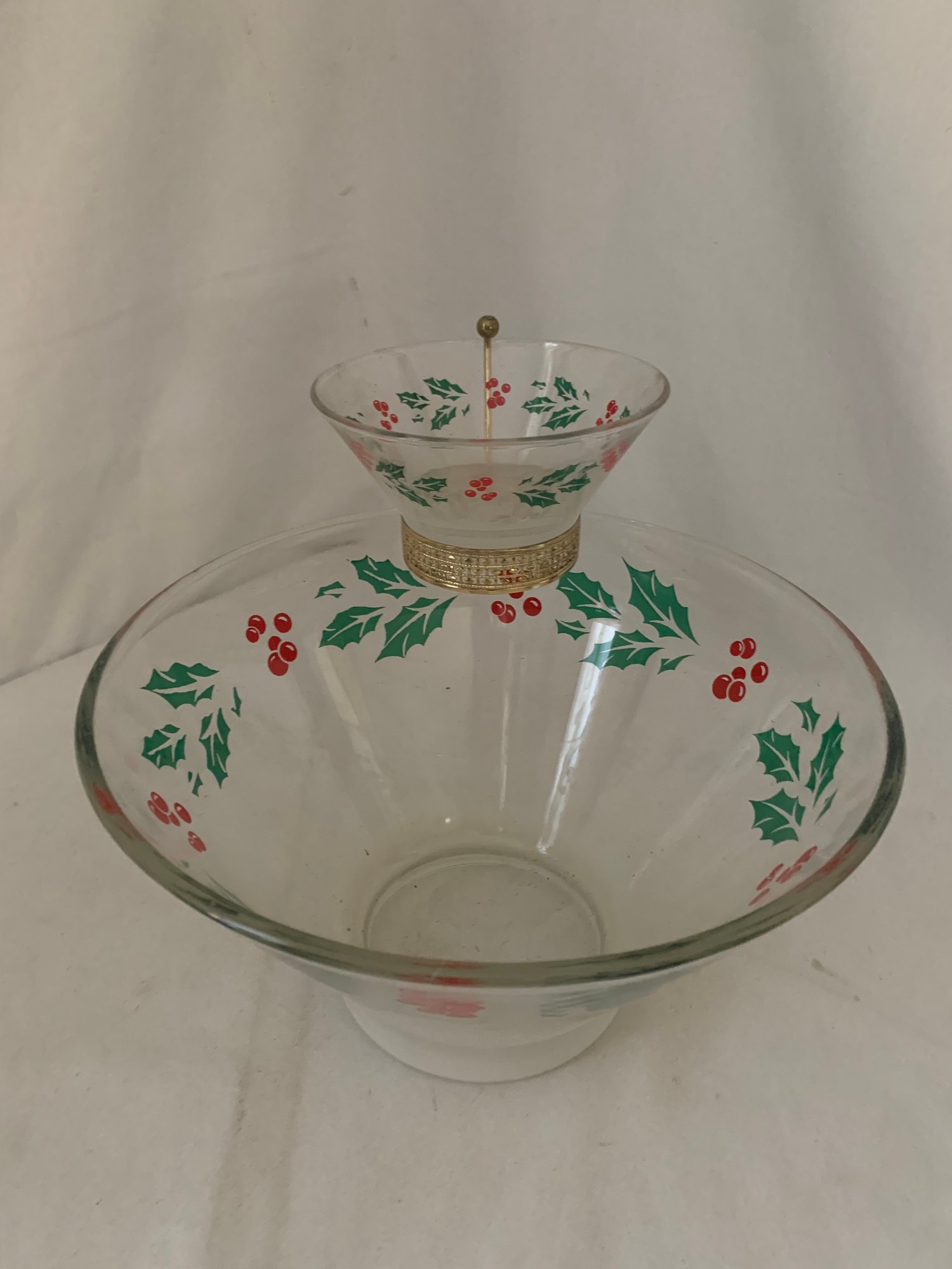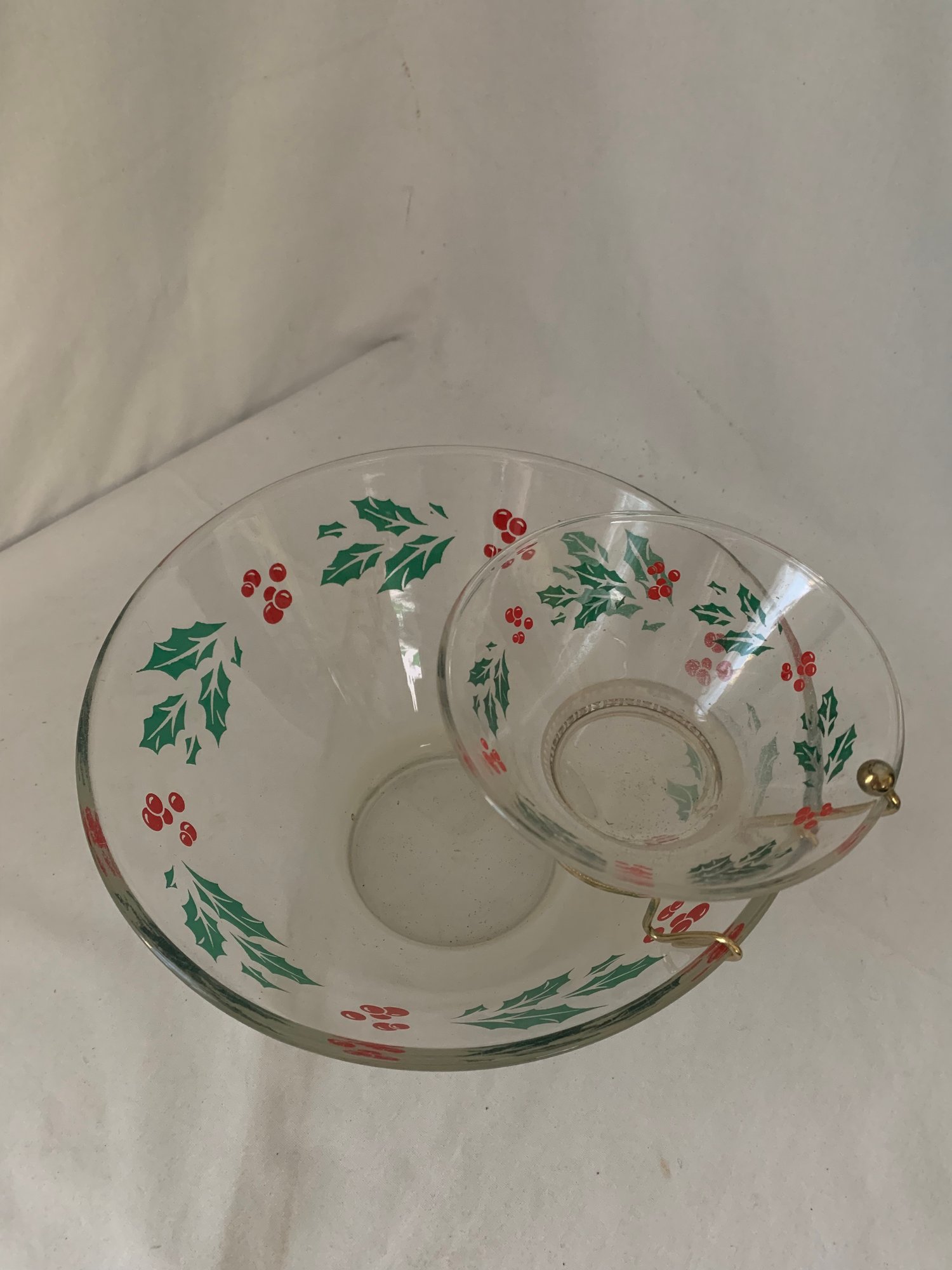 Notes: NIOB Anchor Hocking Holly Chip & Dip Set is pre-owned, new in open box showing no signs of wear commensurate with age & use and has no major apparent identifiable blemishes or flaws. Please review pictures.
