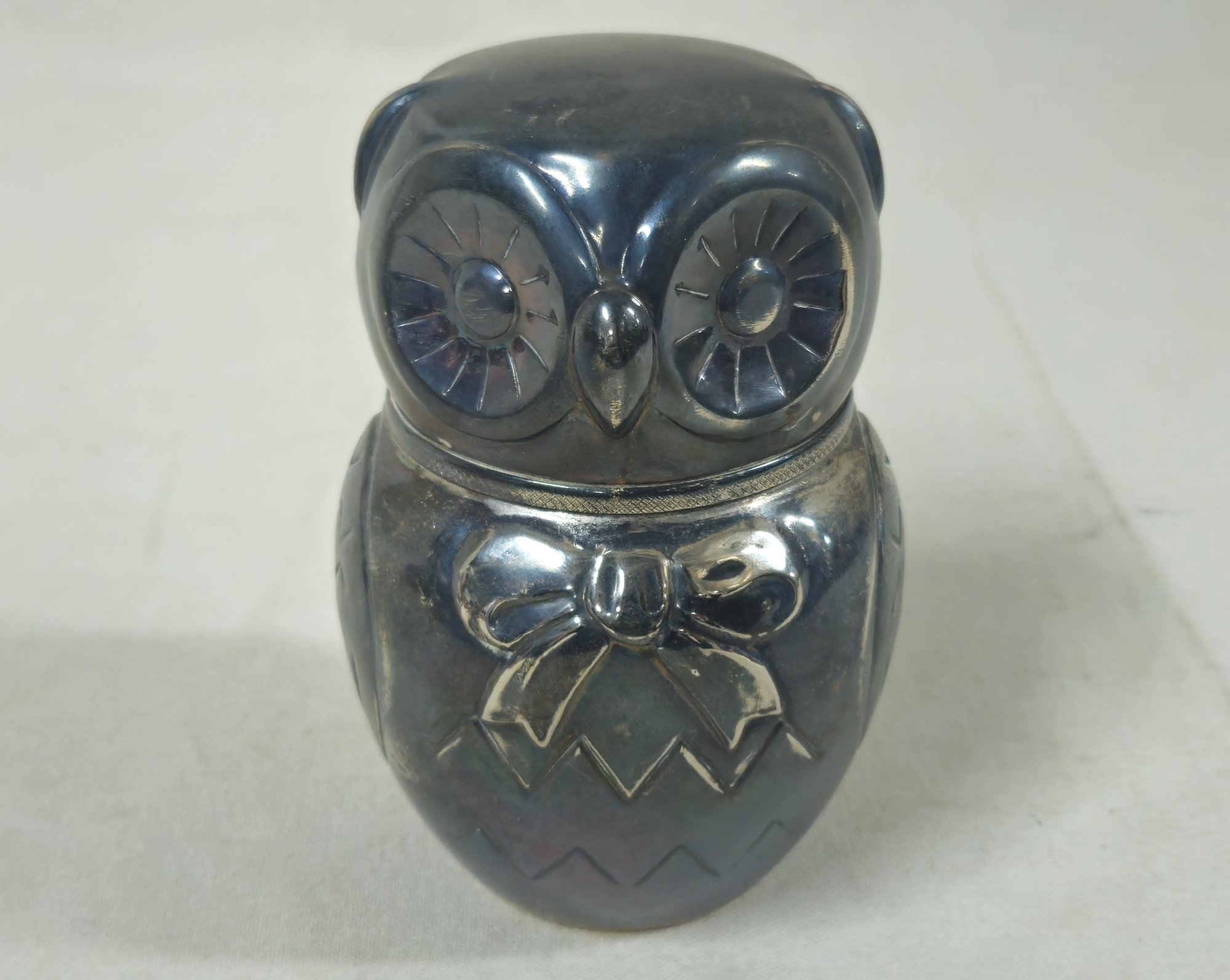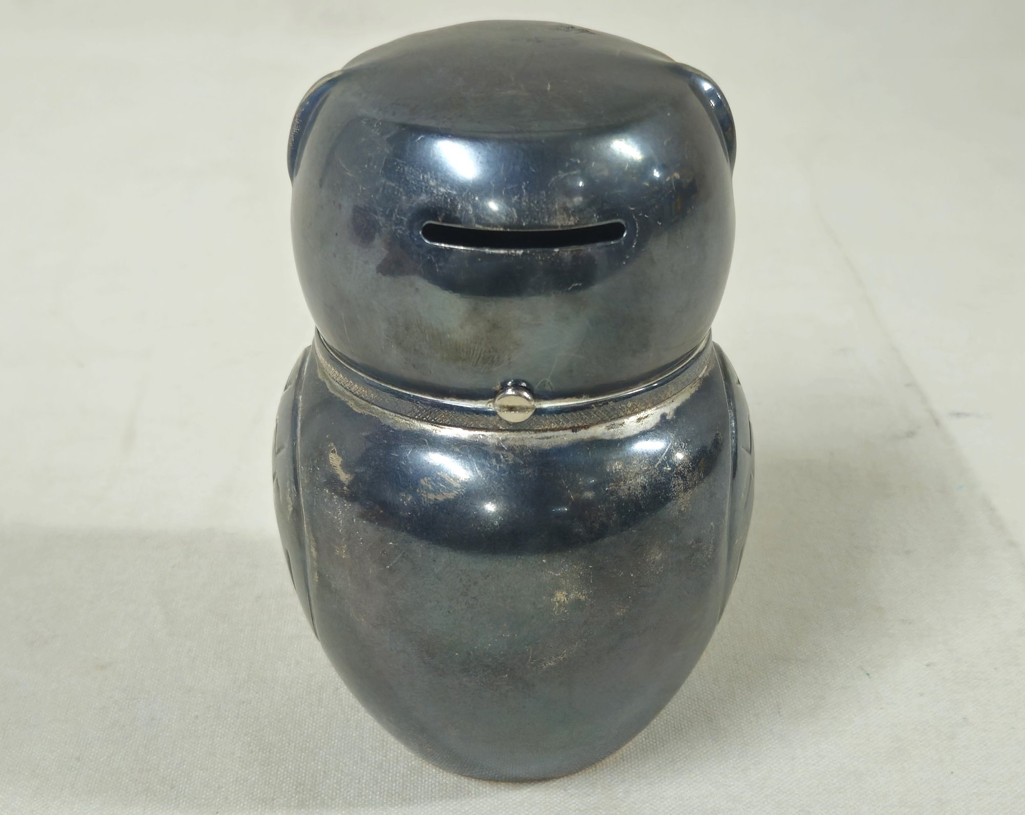 Notes: Raimond Silver Co. Silverplate Owl Coin Bank is pre-owned showing light signs of wear commensurate with age & use and has no major apparent identifiable blemishes or flaws. Please review pictures.