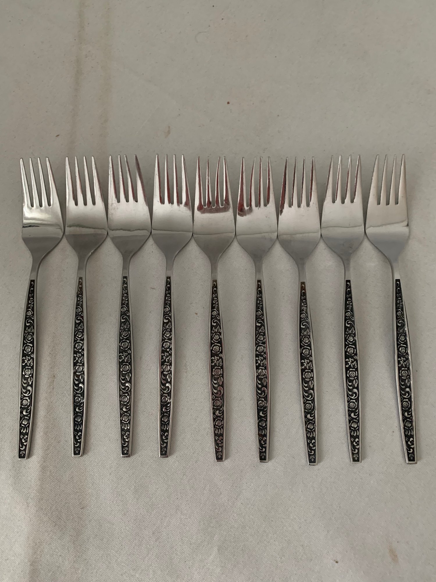 Notes: Granada Rose flatware is pre-owned showing light signs of wear commensurate with age & use with no apparent flaws. Please review pictures
