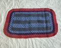 Rectangular braided rug with rounded corners and includes red, orange, purple, blue, grey, and other colors.