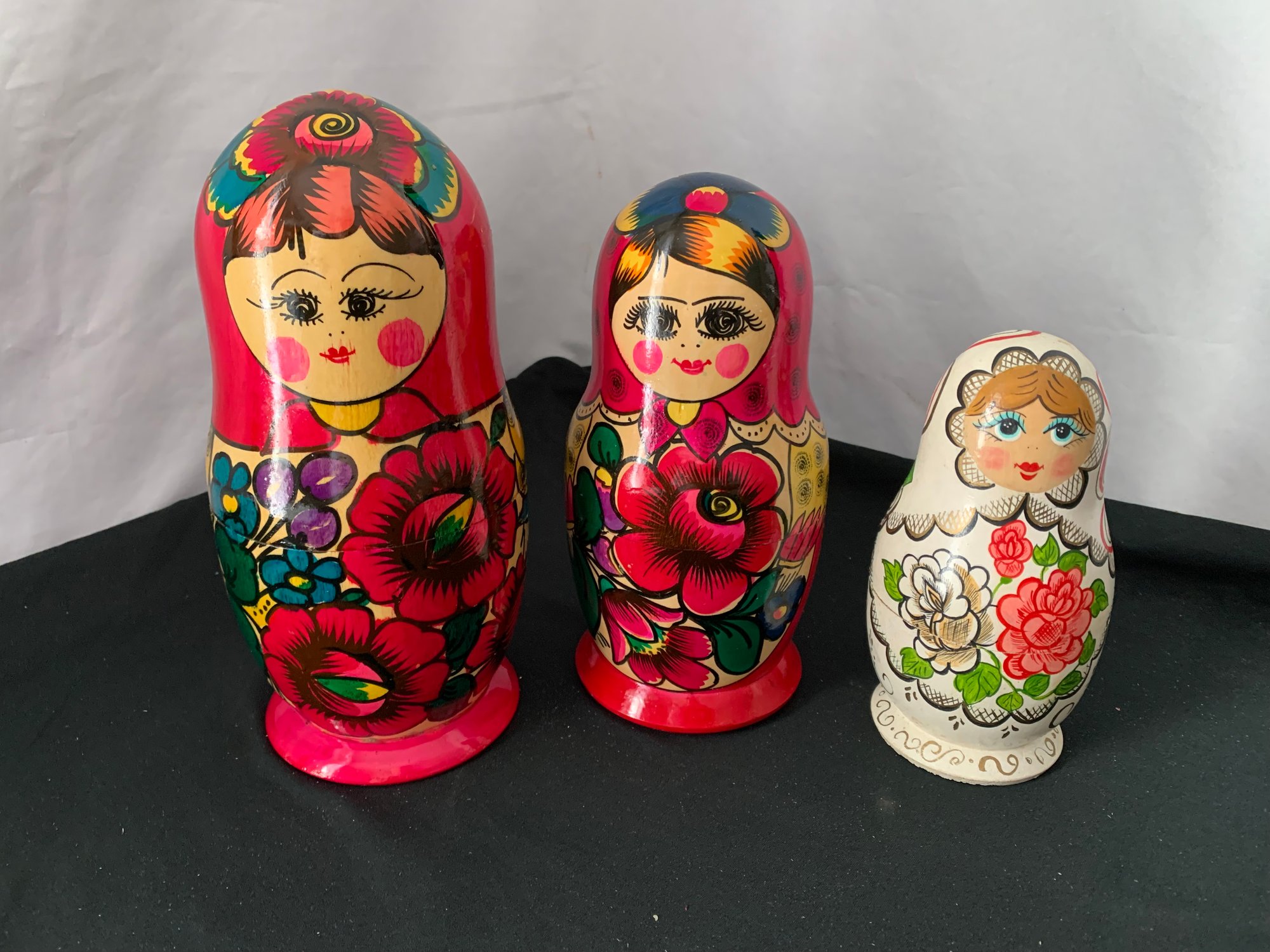 Russian Matryoshka Nesting Dolls - Hand painted - ~9 1/4" h with 7 pieces, ~8 1/2" h with 7 pieces and ~7 1/2" with 5 pieces -