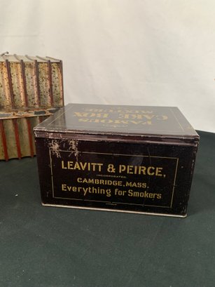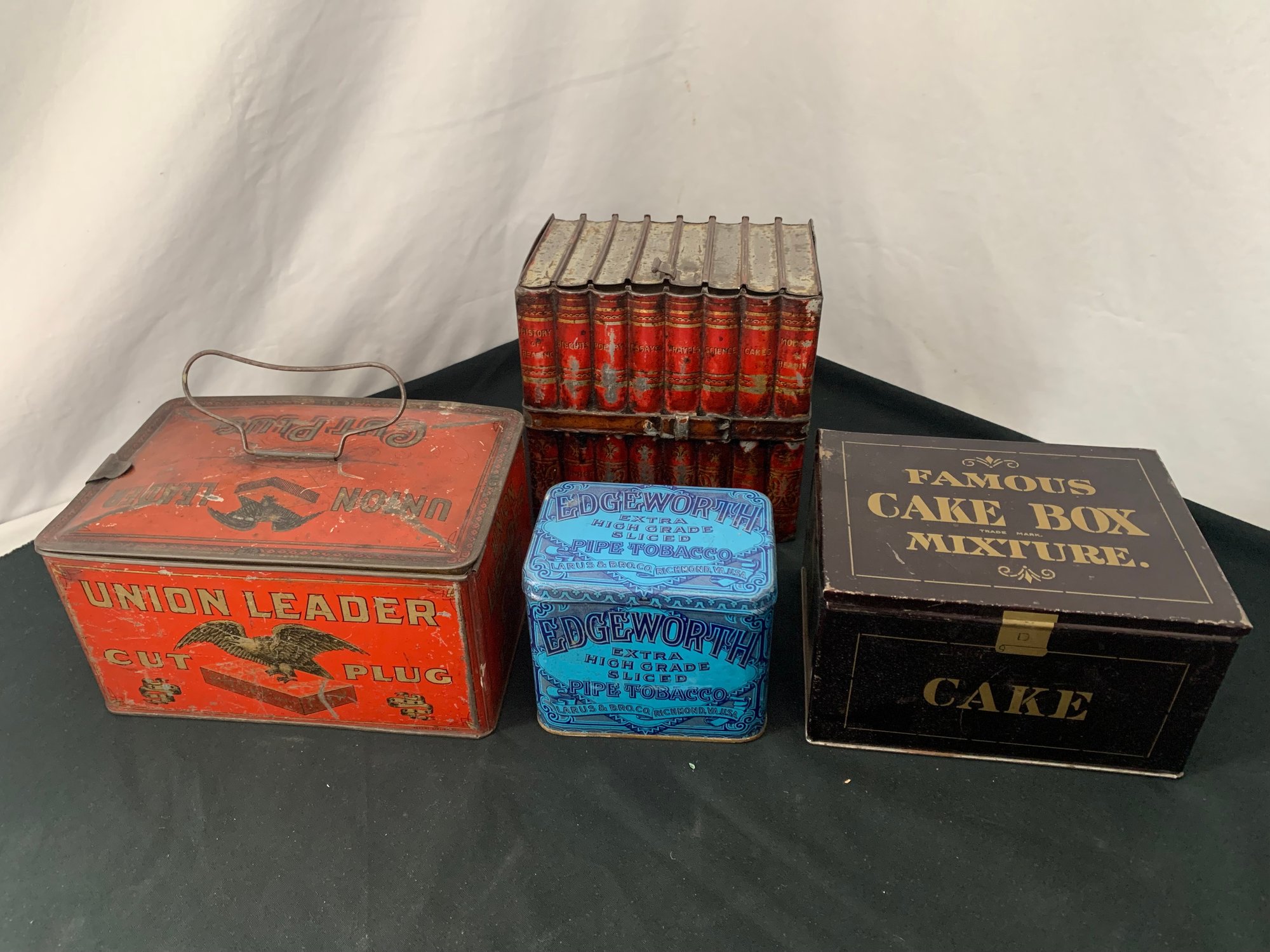 Union Leader Cut Plug, Leavitt & Peirce Cake Box mixture, Edgeworth & Huntley & Palmer Biscuit tin