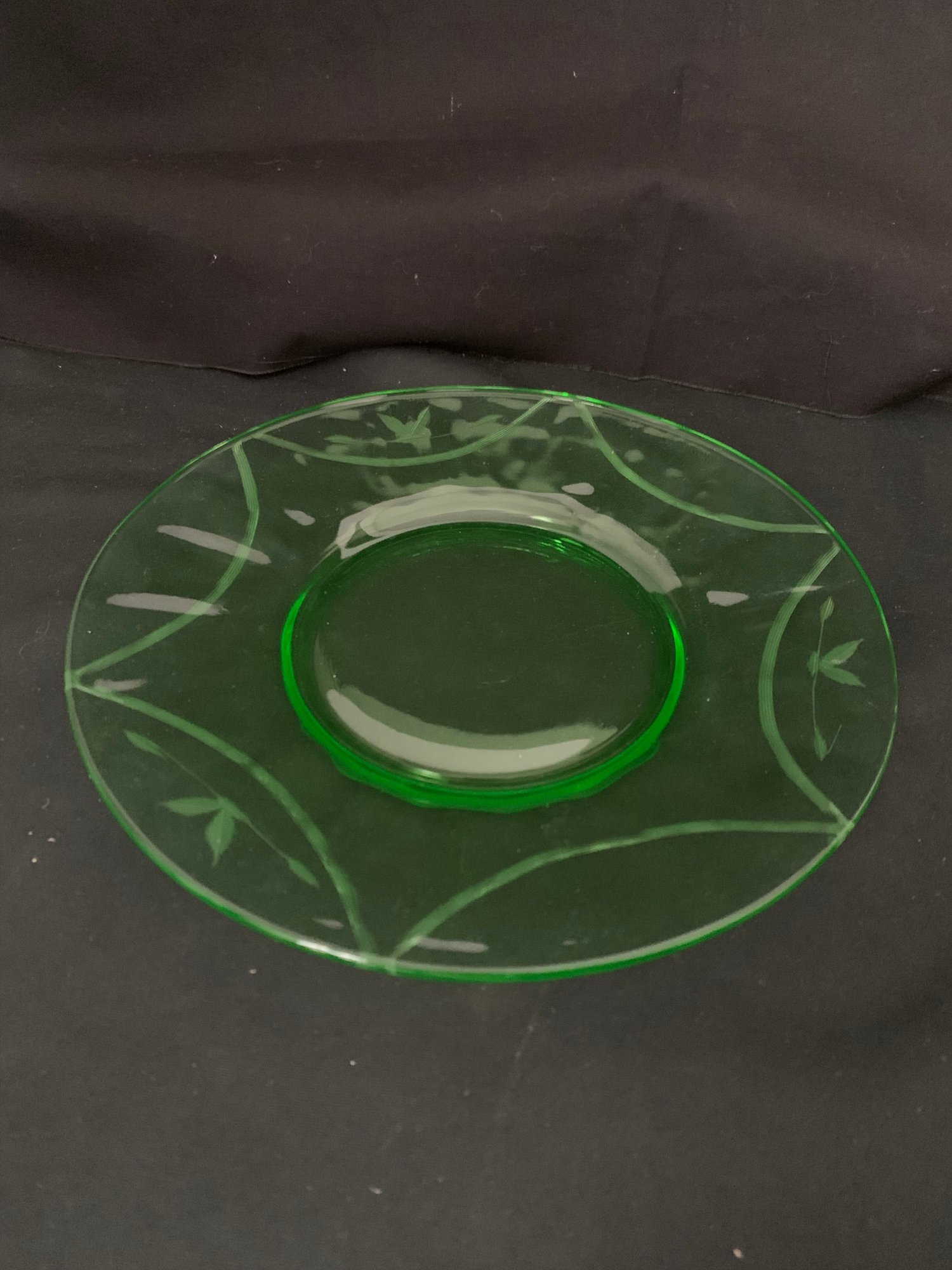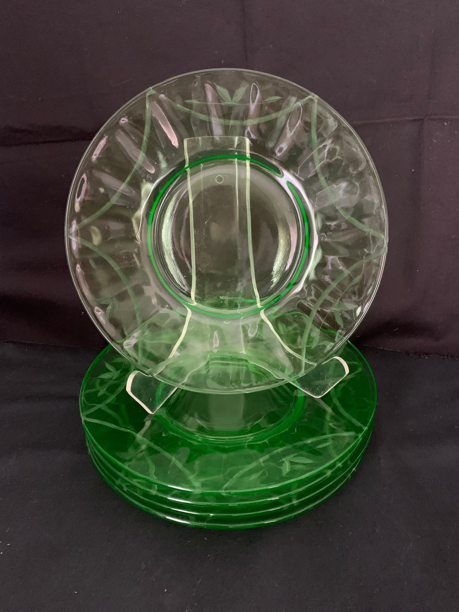 Notes: Set of 5 green plates are pre-owned showing light wear commensurate with age & use with no apparent flaws. Please review pictures.