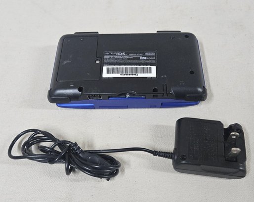 Nintendo DS blue handheld game console with stylus, charging cord, & ~12 assorted games including Pokemon Mystery Dungeon Blue Rescue Team, Mario Kart DS, Sorcerer's Apprentice, Lego Marvel Superheroes Universe in Peril, Frogger Helmet Chaos, and others.