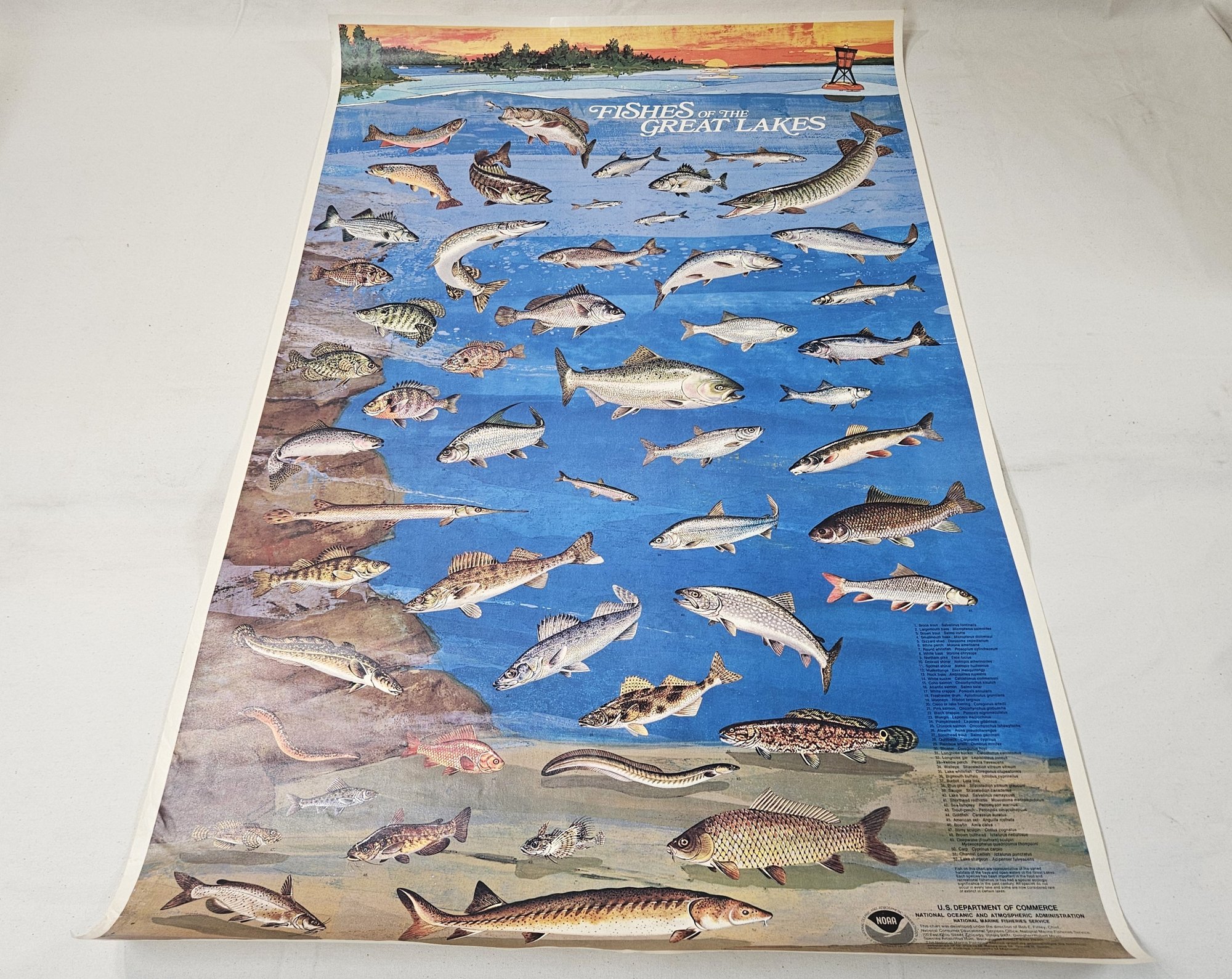 Notes: Vintage 1978 NOAA Fishes of the Great Lakes Poster is pre-owned showing signs of wear commensurate with age & use. Please review photos.