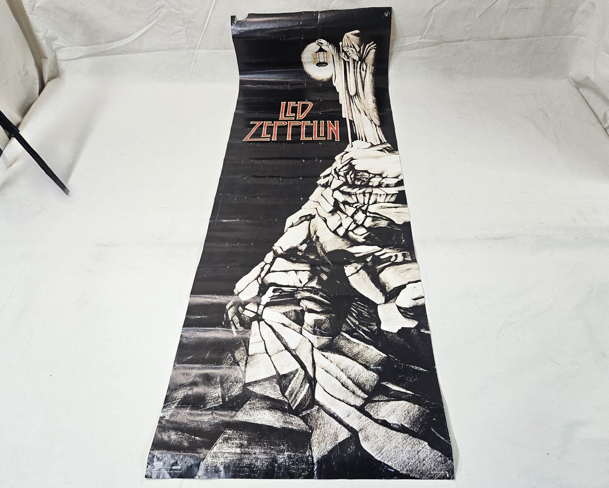 Notes: Vintage 1987 Led Zeppelin Stairway to Heaven Door Poster is pre-owned showing signs of wear commensurate with age & use. Has a tear in upper left corner and has multiple fold lines. Please review photos.