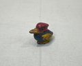 Vintage cast iron round duck paperweight painted in red, yellow, & blue. A similar design was produced by Kenton Toys as a coin bank.