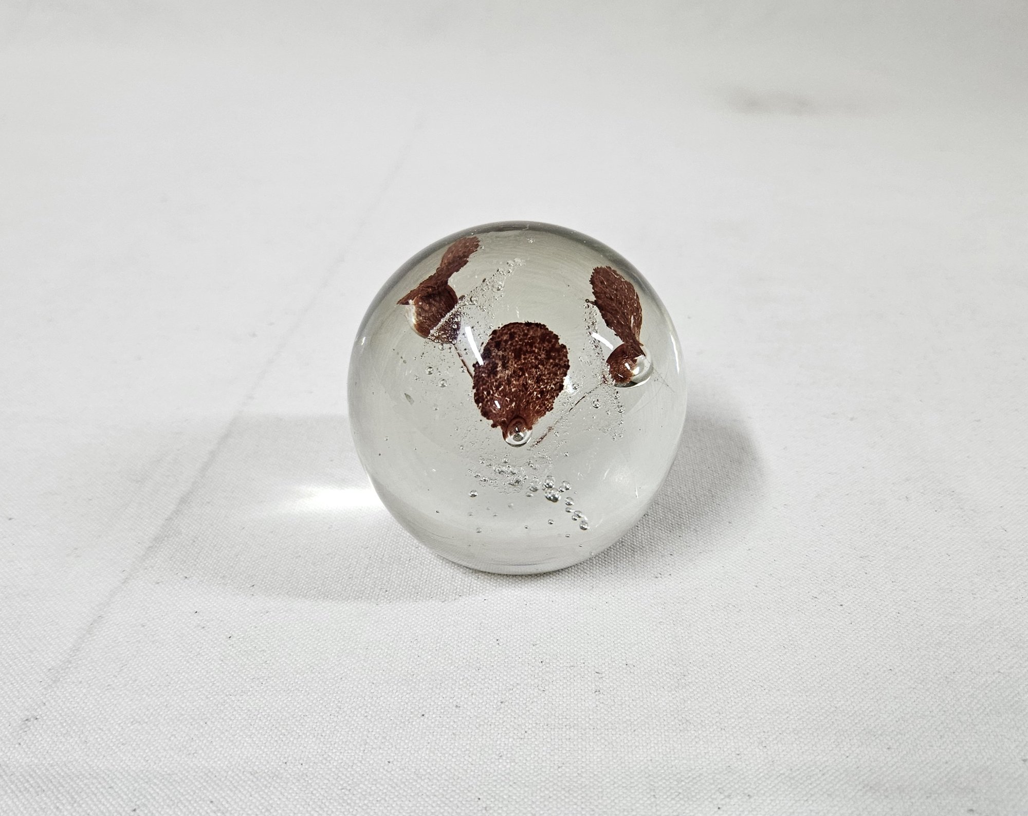 Vintage flower burst glass paperweight. Maker Unknown.