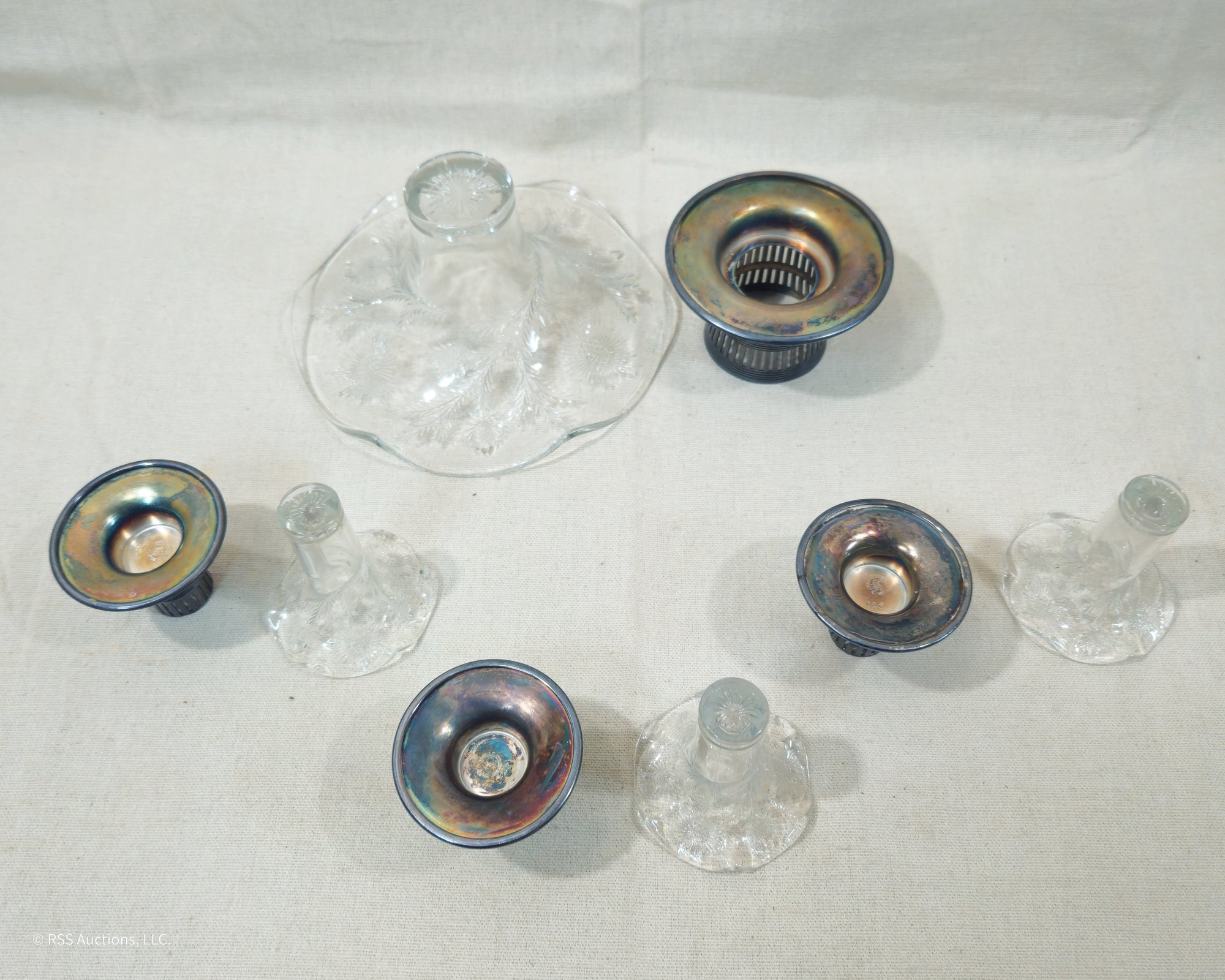 Notes: Vintage Forbes Silver Co. Silverplate & Glass Bud Vases Set are pre-owned showing minimal to light signs of wear commensurate with age & use and individually have no major apparent identifiable blemishes or flaws. Please review pictures.