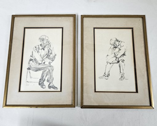 Notes: Vintage Framed Seated Male Portrait Drawings Signed H. Scherer are pre-owned showing signs of wear commensurate with age & use. Please review photos.