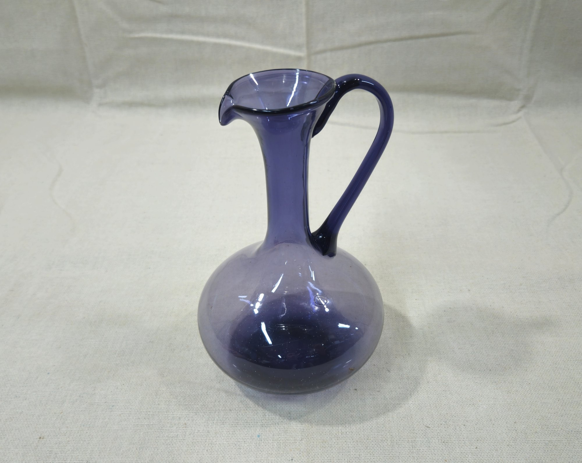 Vintage handblown amethyst purple glass ewer pitcher. Attributed to Guildcraft Glass.