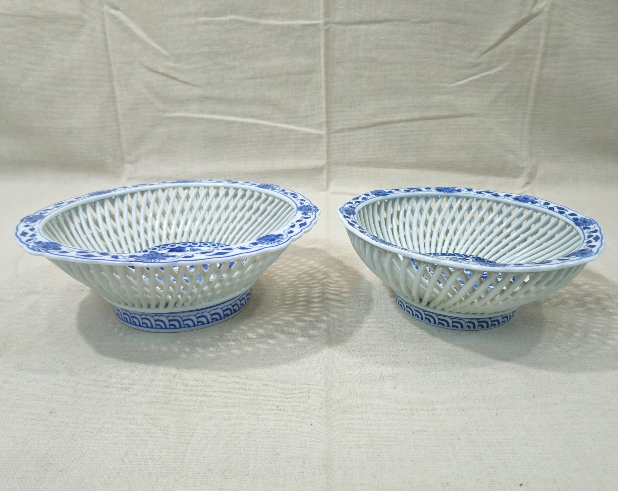 Group of ~2 vintage Japanese Hasami Yaki porcelain lattice bowls. Marked on base.