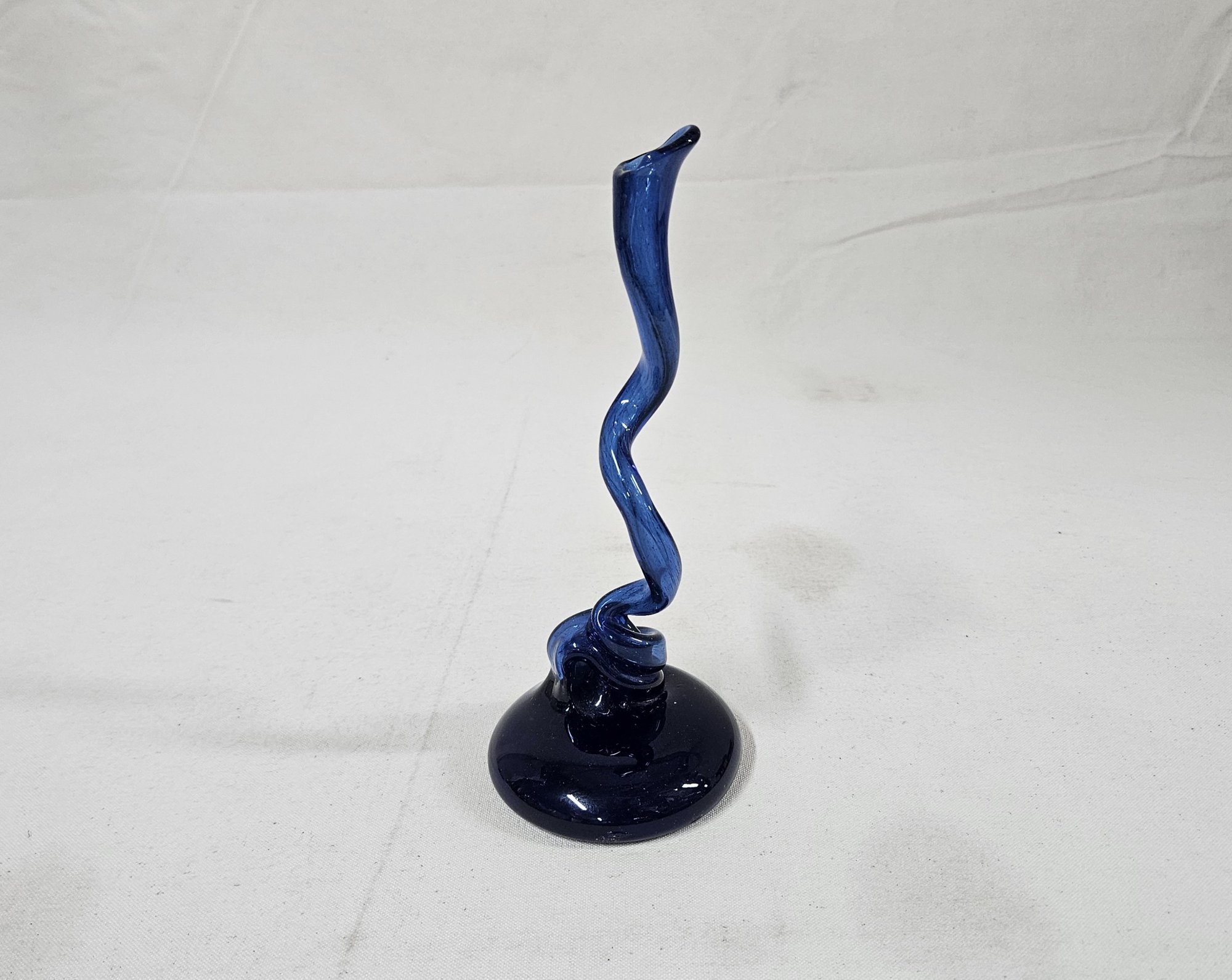 Vintage John Harko handblown glass bud vase in cobalt blue glass. Signed on base.