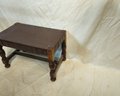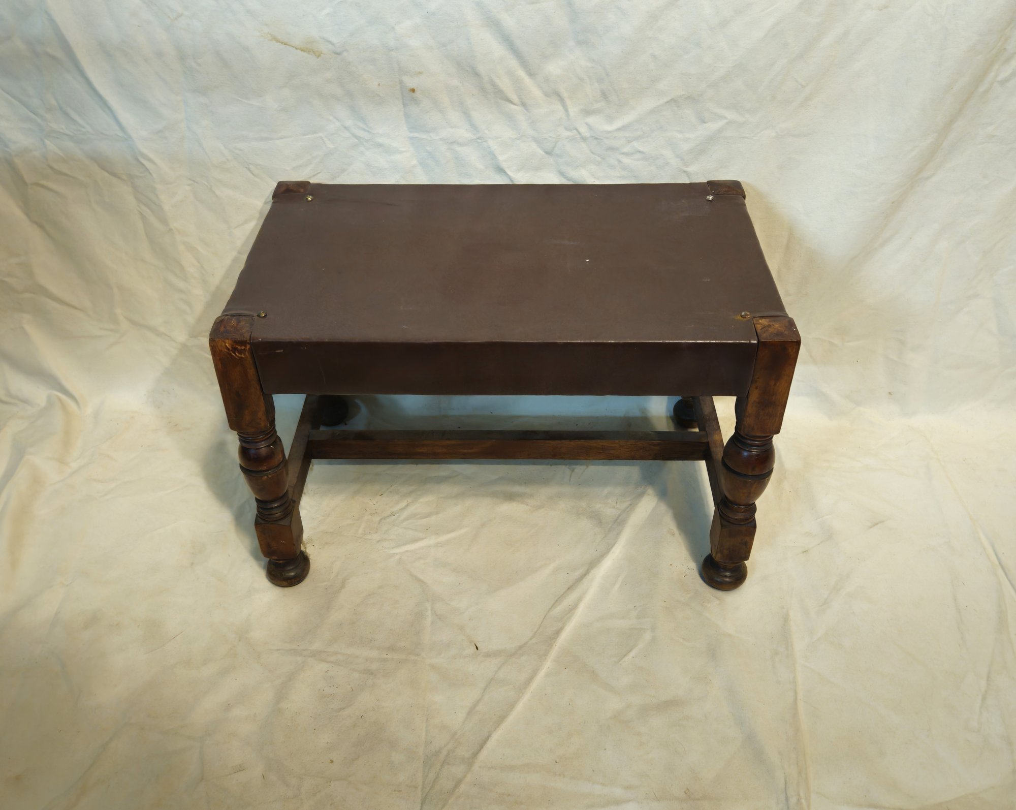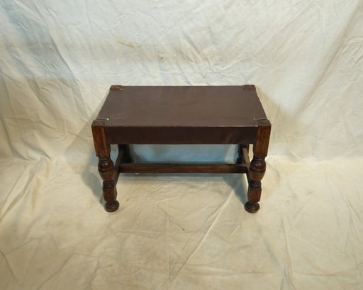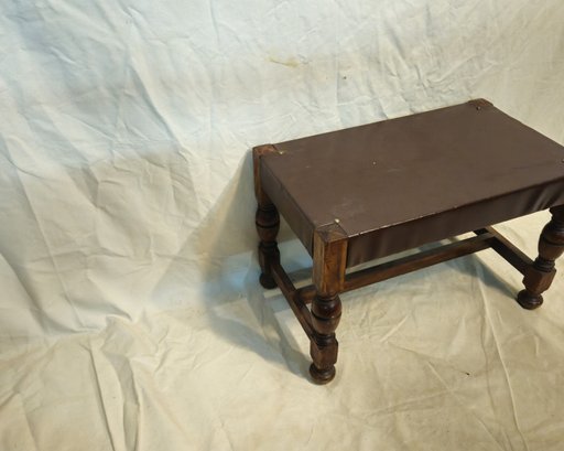 Vintage leather covered wood footrest.