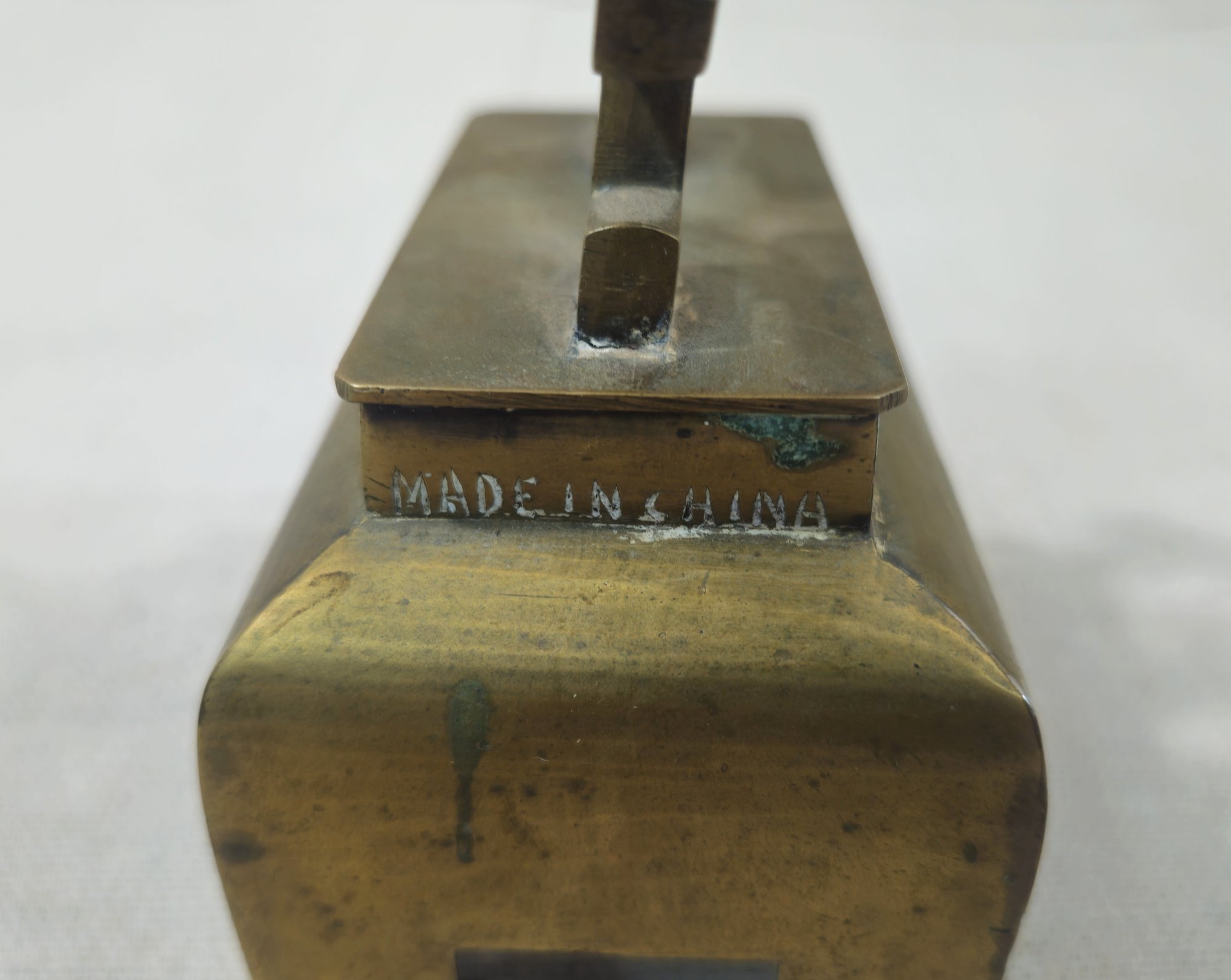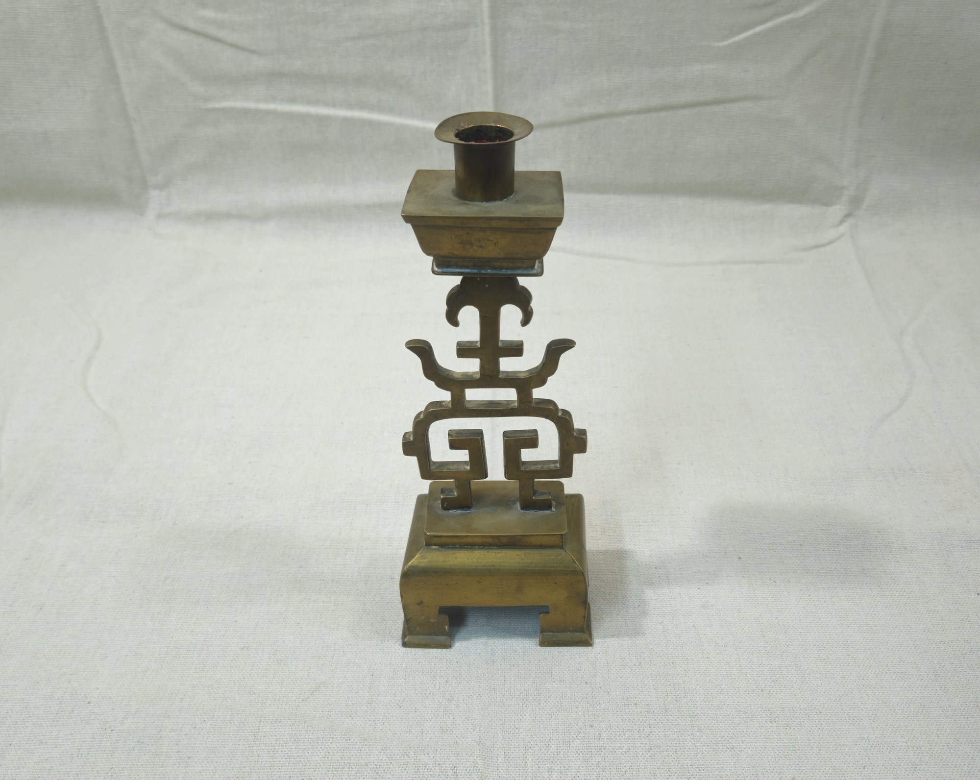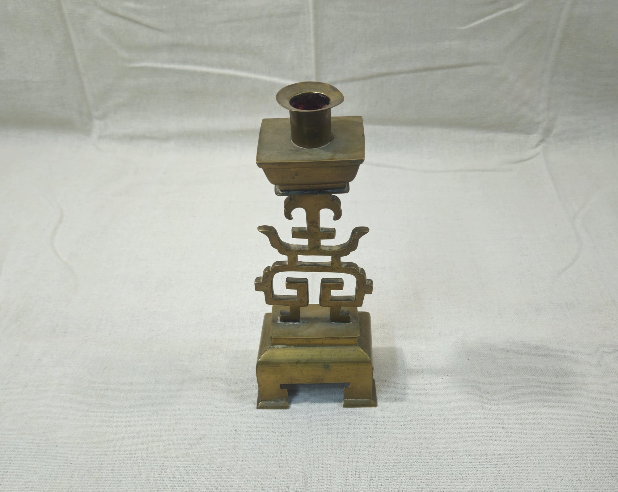 Vintage Asian symbol brass candlestick. Marked on side Made in China.