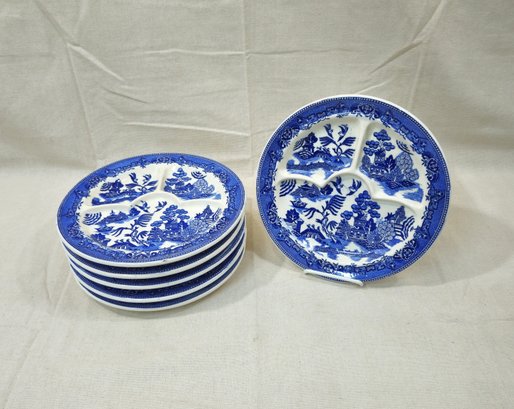 Group set of ~5 Blue Willow grill plates. Produced and marked on base by Moriyama.